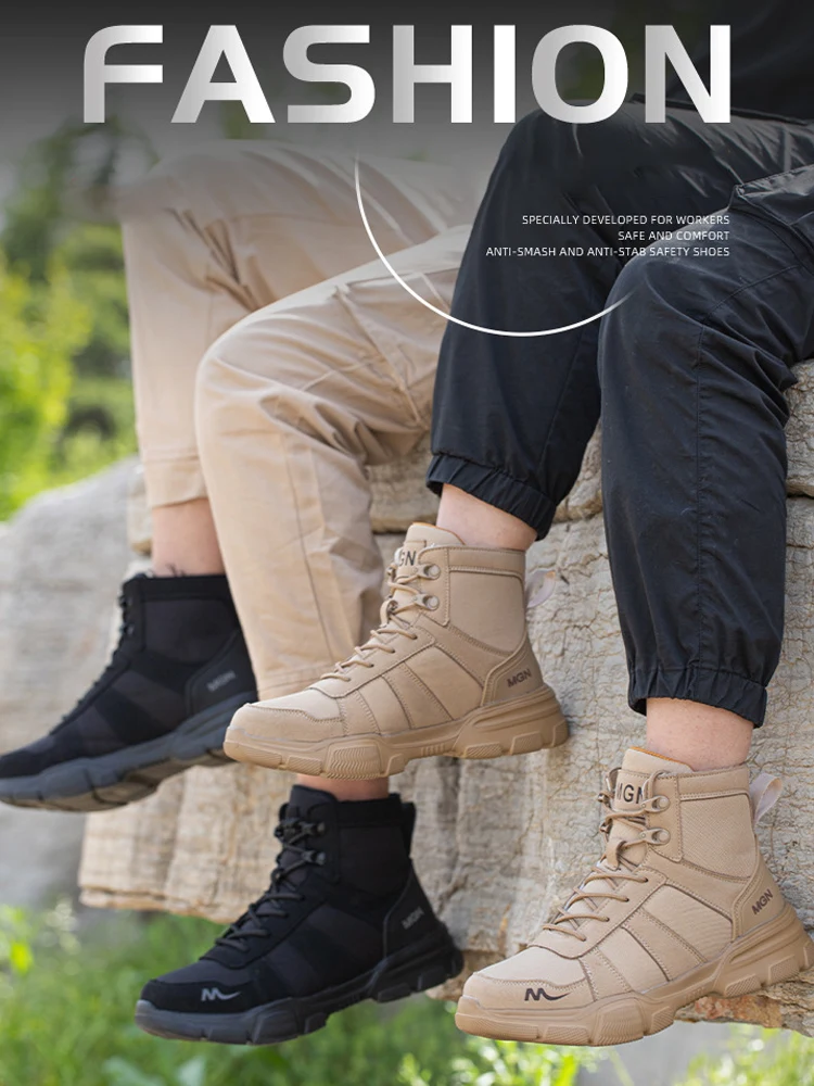 Super light safety shoe:It is like the weight of a pair of running shoes. They can help you to work happily all day without exhausting your feet. With super soft insoles and High elastic sole, your feet are safe and comfortable. Breathable upper is very soft Comfortable, Keep your feet comfortable and breathable.