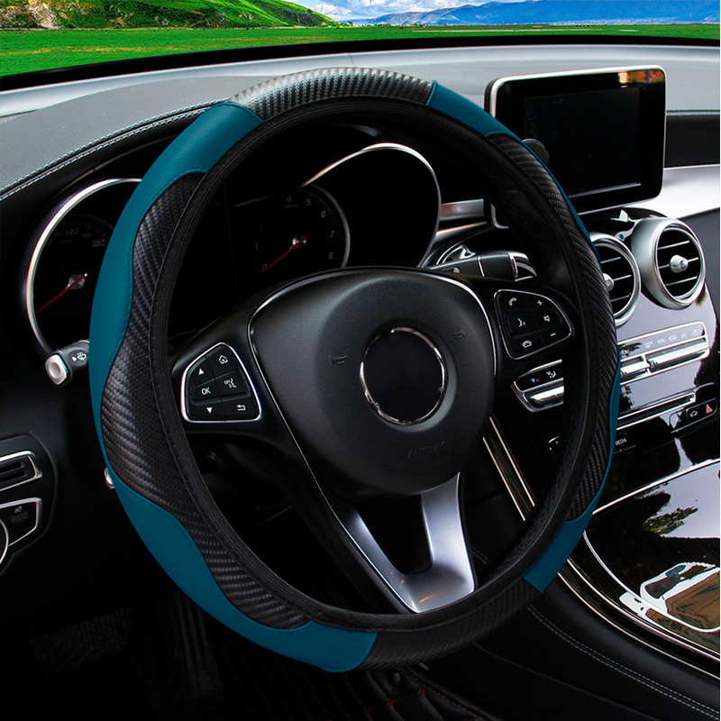 PU Carbon Fiber Leather Car Steering Wheel Cover without Inner Ring Suitable for 14.5-15 Inches of Automotive Supplies
