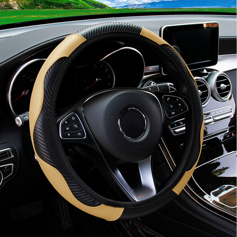 PU Carbon Fiber Leather Car Steering Wheel Cover without Inner Ring Suitable for 14.5-15 Inches of Automotive Supplies