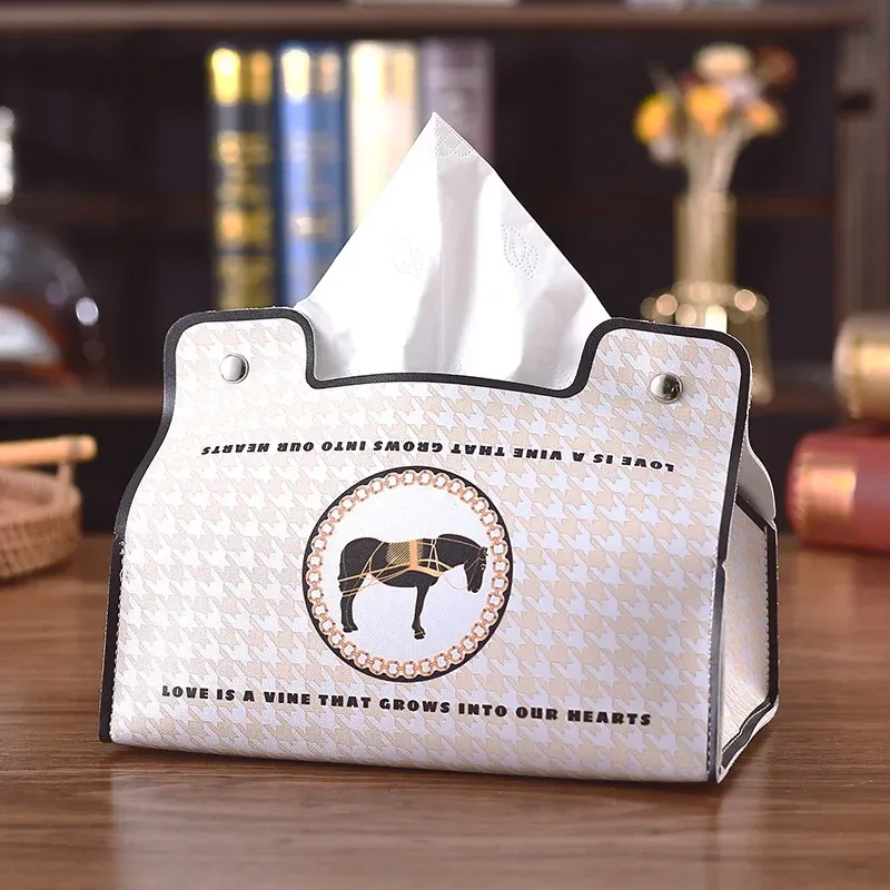 PU Leather Tissue Box European Retro Style Waterproof Napkin Holder Bathroom Car Living Room Coffee Table Universal Storage Box