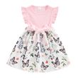 Little Girl 2 Piece Summer Outfits Round Neck Fly Sleeve Ribbed Butterfly Print Dress + Solid Color Belt Set