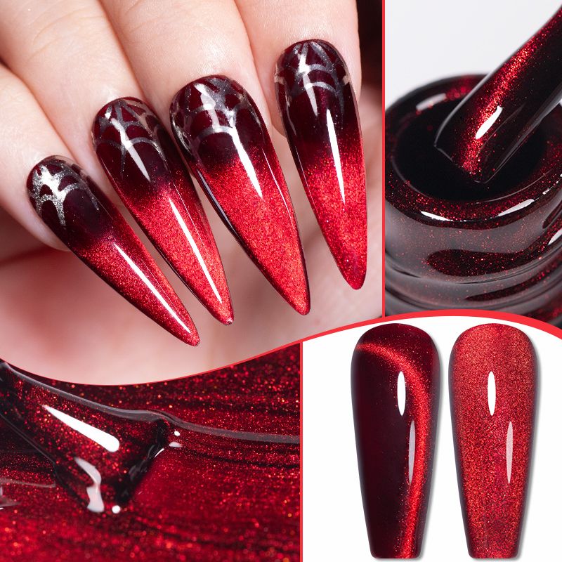 PUENTE 7.5ML Wine Red Cat Magnetic Gel Nail Polish Super Shiny Ruby Red Cat Eye Gel Soak Off UV Semi-Permanent Nail Art Varnish