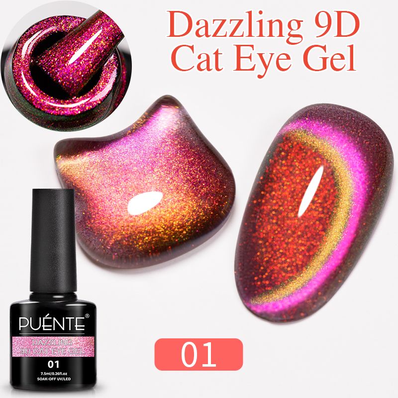 PUENTE 7.5ML Wine Red Cat Magnetic Gel Nail Polish Super Shiny Ruby Red Cat Eye Gel Soak Off UV Semi-Permanent Nail Art Varnish