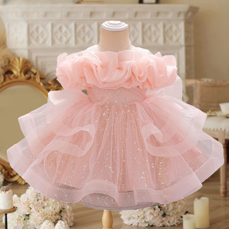 Puffy Pink Flower Baby Wedding Princess Girl Dress Toddler Tulle Baptism Kids Clothes Bridesmaid 1st Birthday Party Prom Costume
