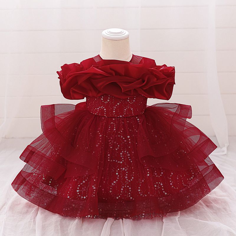 Puffy Pink Flower Baby Wedding Princess Girl Dress Toddler Tulle Baptism Kids Clothes Bridesmaid 1st Birthday Party Prom Costume