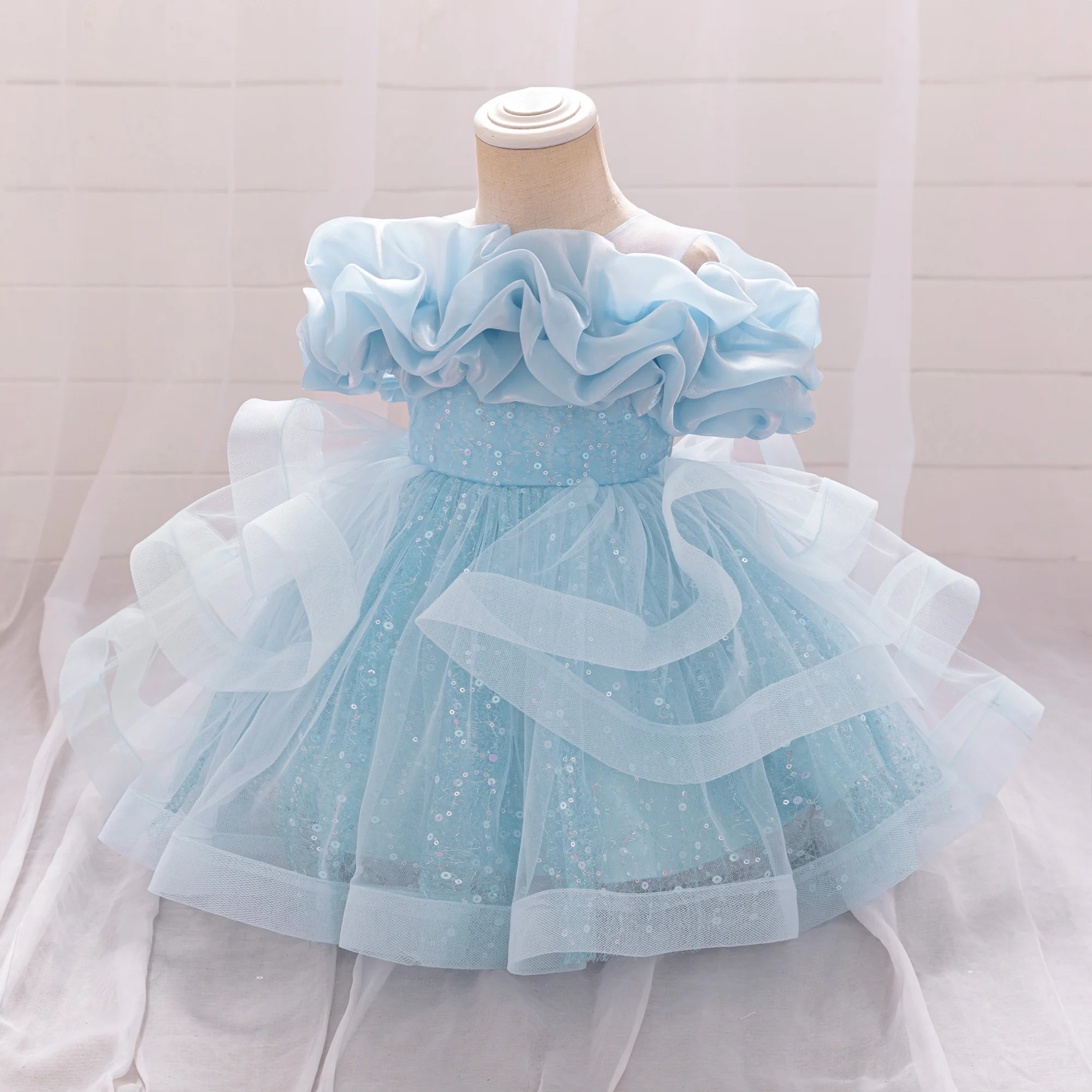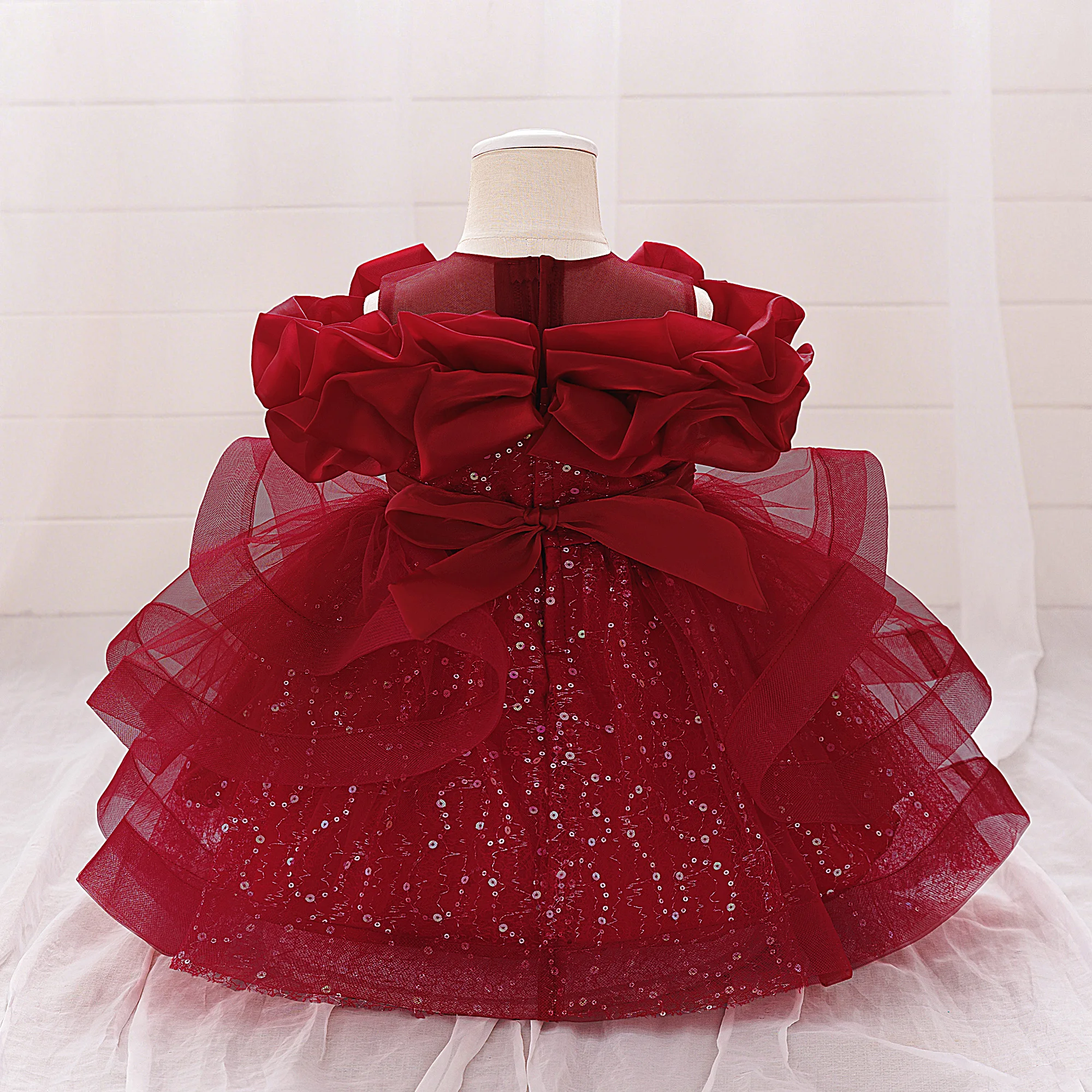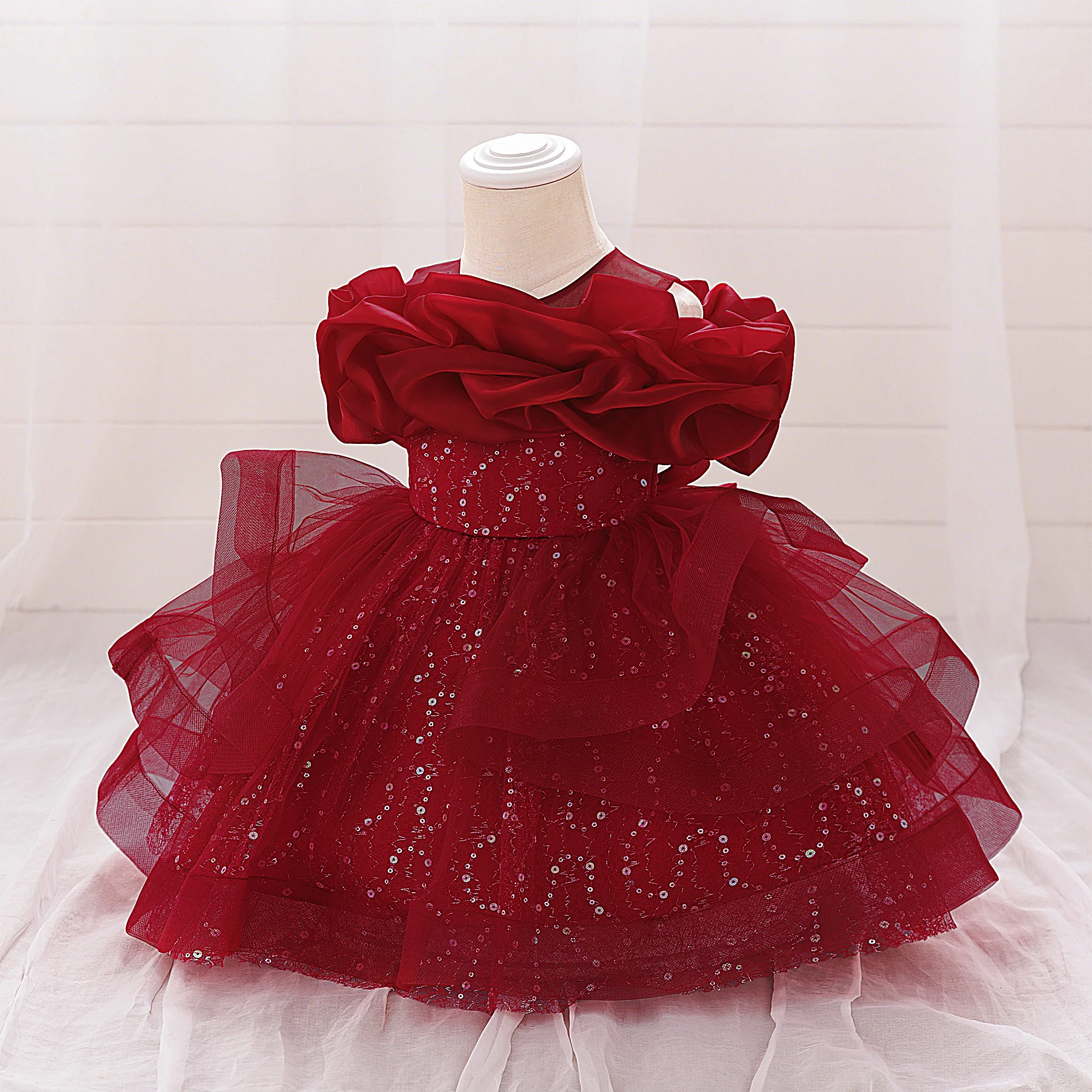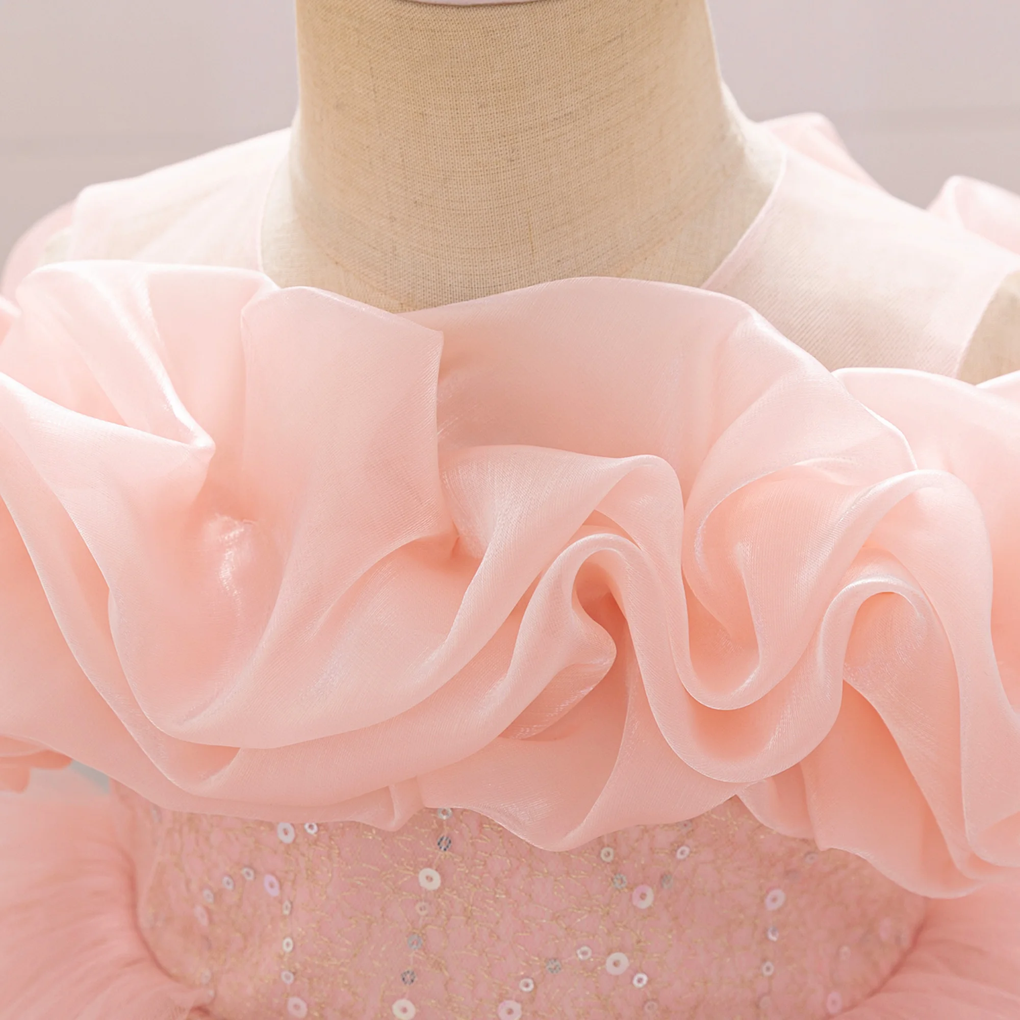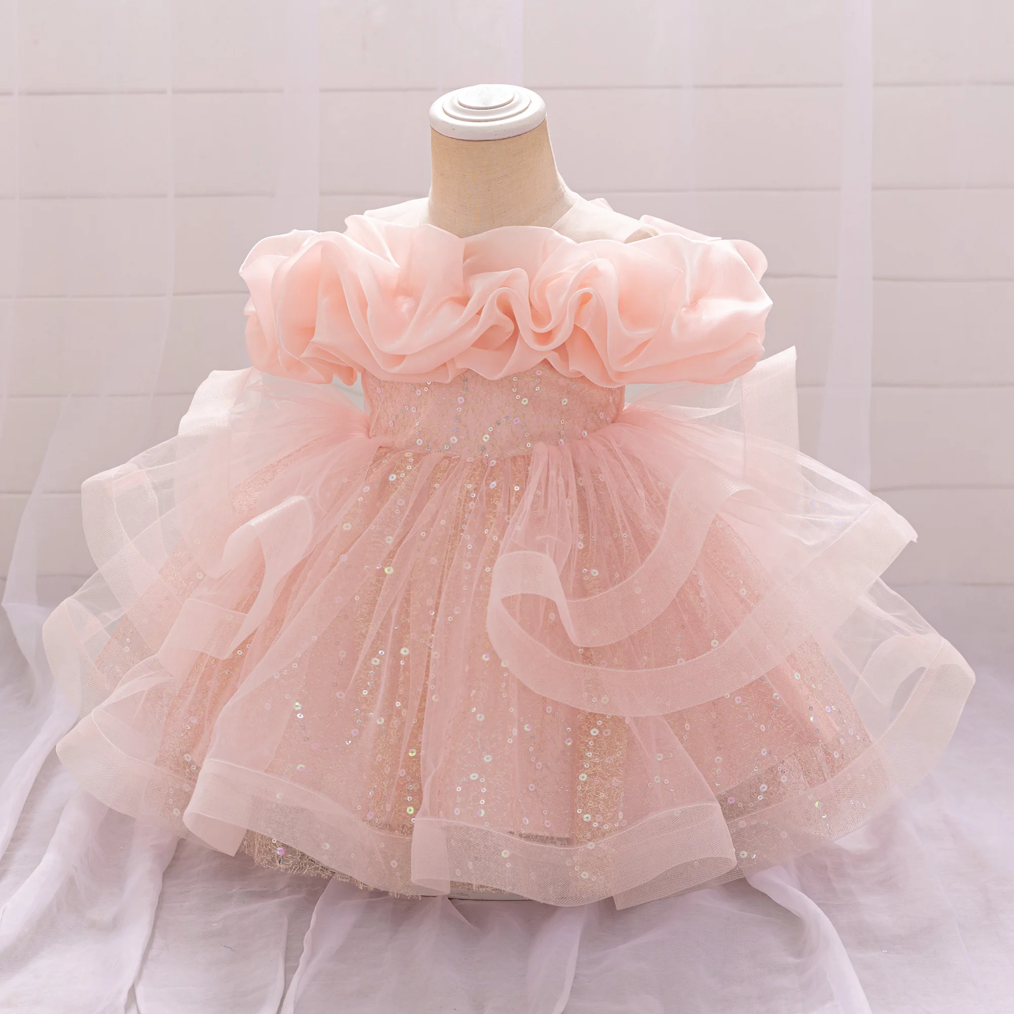 Puffy Pink Flower Baby Wedding Princess Girl Dress Toddler Tulle Baptism Kids Clothes Bridesmaid 1st Birthday Party Prom Costume