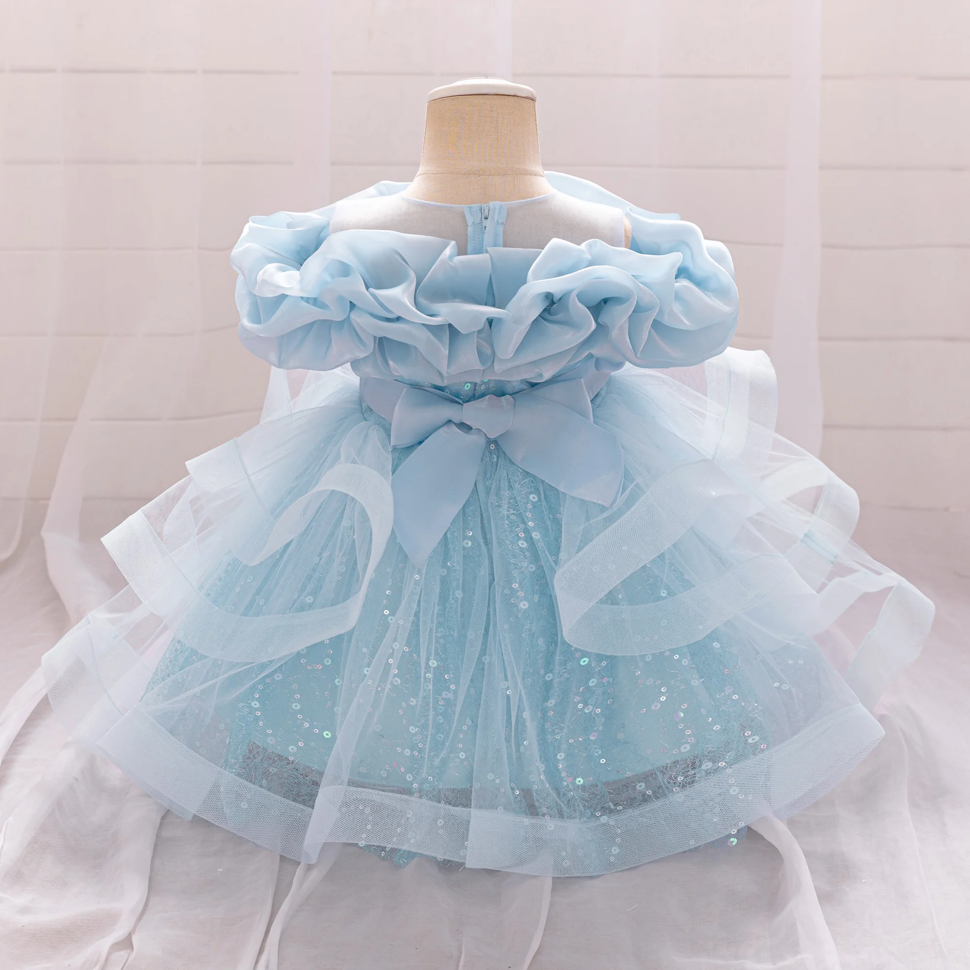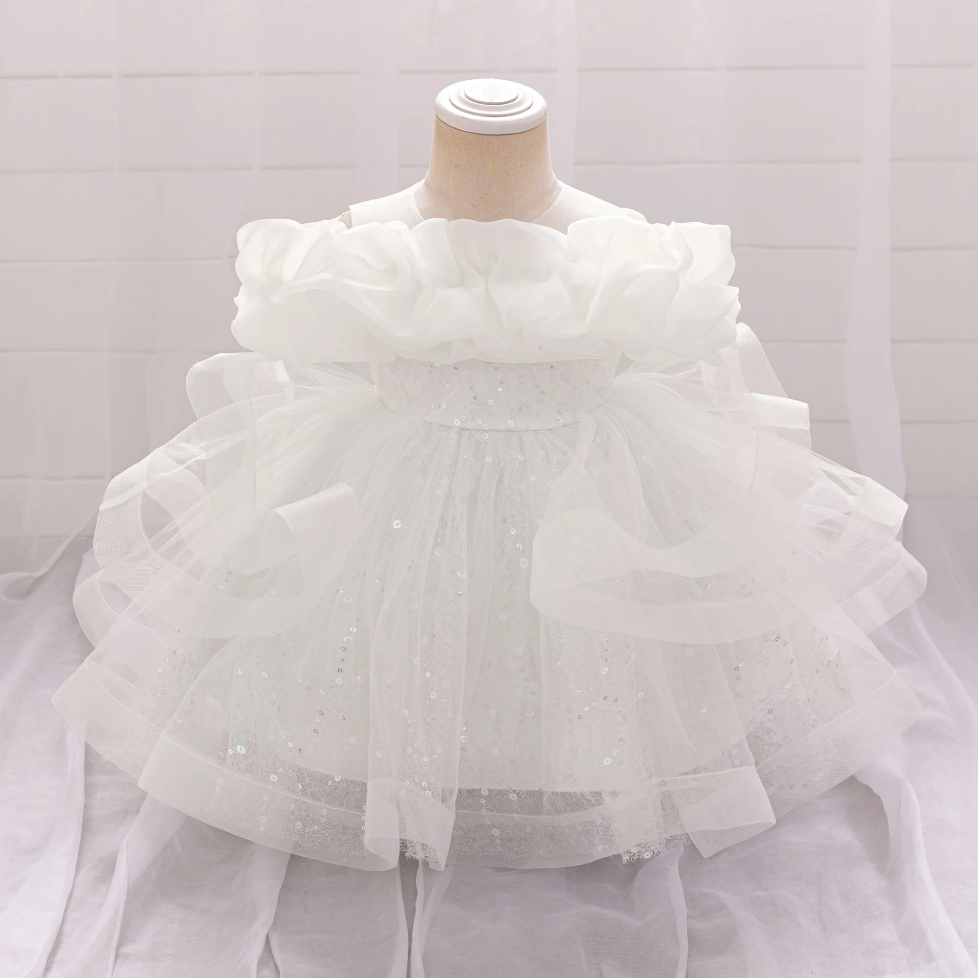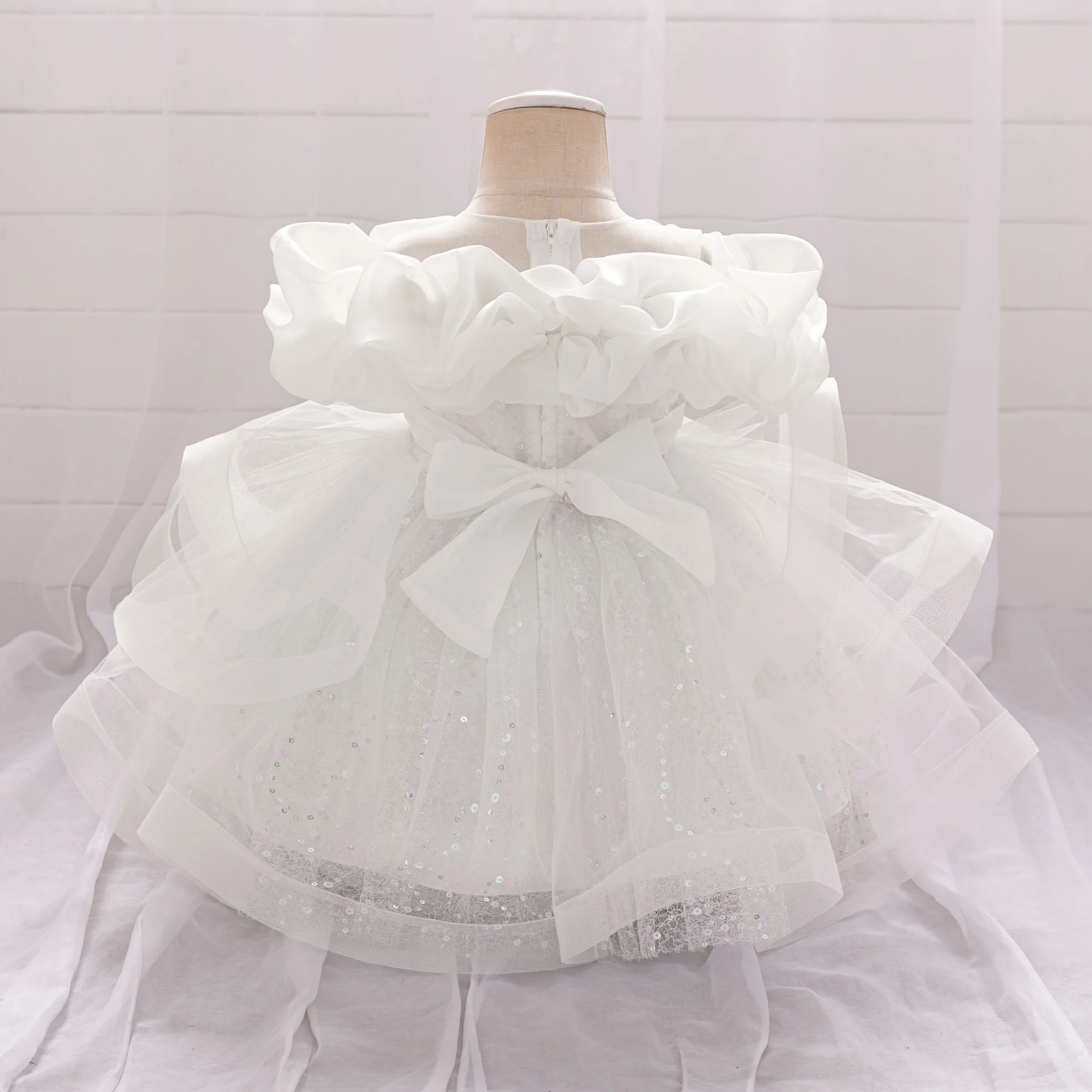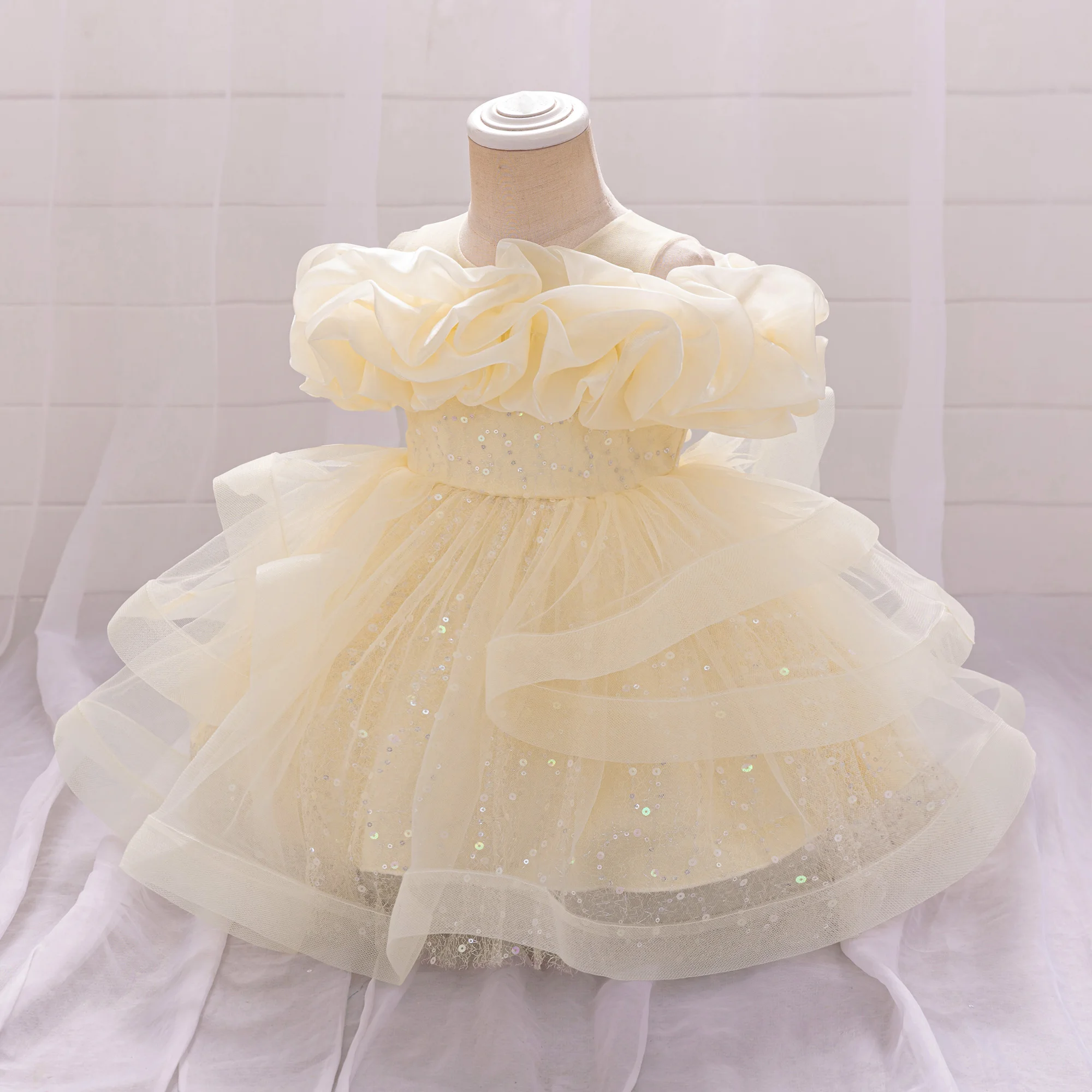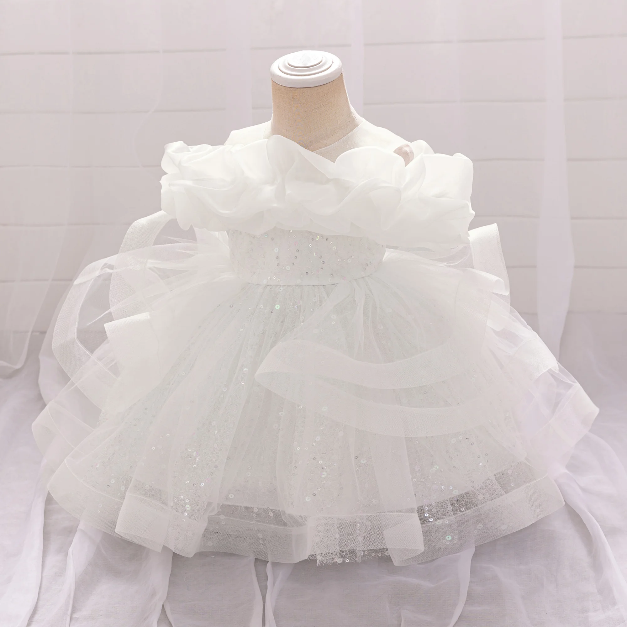 Puffy Pink Flower Baby Wedding Princess Girl Dress Toddler Tulle Baptism Kids Clothes Bridesmaid 1st Birthday Party Prom Costume