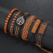 Punk Casual Bead6 Pc/set Tree Black Khaki Handmade Men Bracelets Male Women Leather Bracelets Men Bangle Wholesale Jewelry Gift