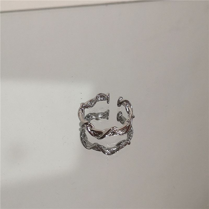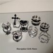 Punk Harajuku Goth Thorns Black Silver Color Irregular Heart Cross Open Ring For Women Men Lover Vintage 90s Y2K Grunge Jewely