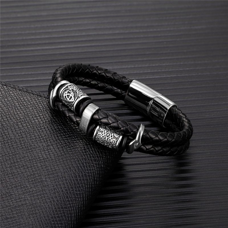 Punk Men Vikings Style Genuine Leather Bracelet Braided Multilayer Stainless Steel Norse Runes Bead Bangles Couple Jewelry Gift