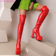 Punk Style Elastic Microfiber Shoes Woman Ankle Boots Autumn Winter Snow Boots High Heel Thick Platform Mid-Calf Boots Woman 45