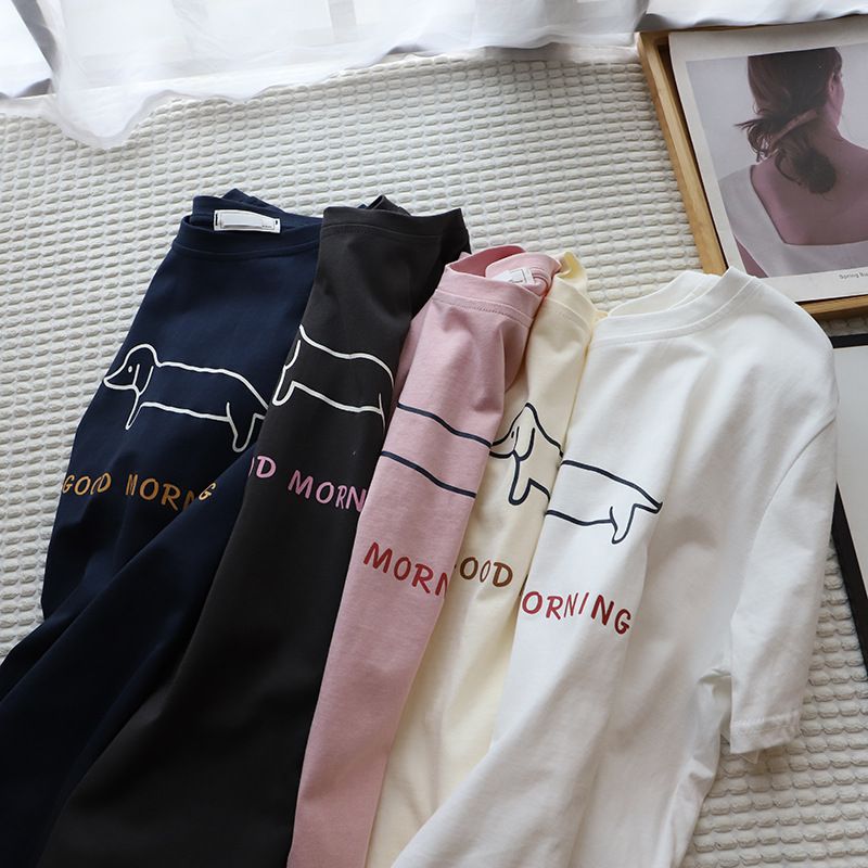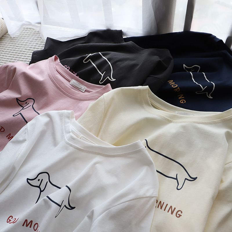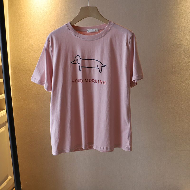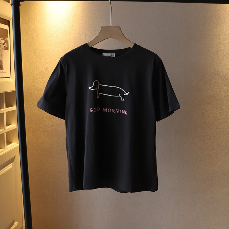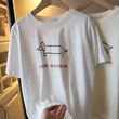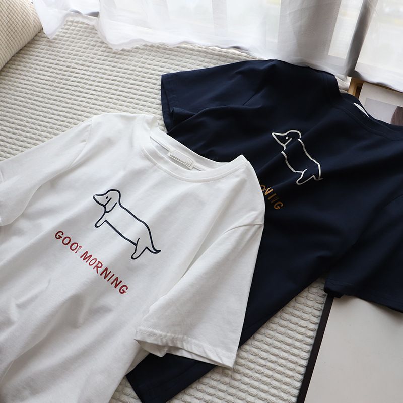 Puppy Printed Loose Short-sleeved T-shirt Casual Casual Top Dark Gray Free Size