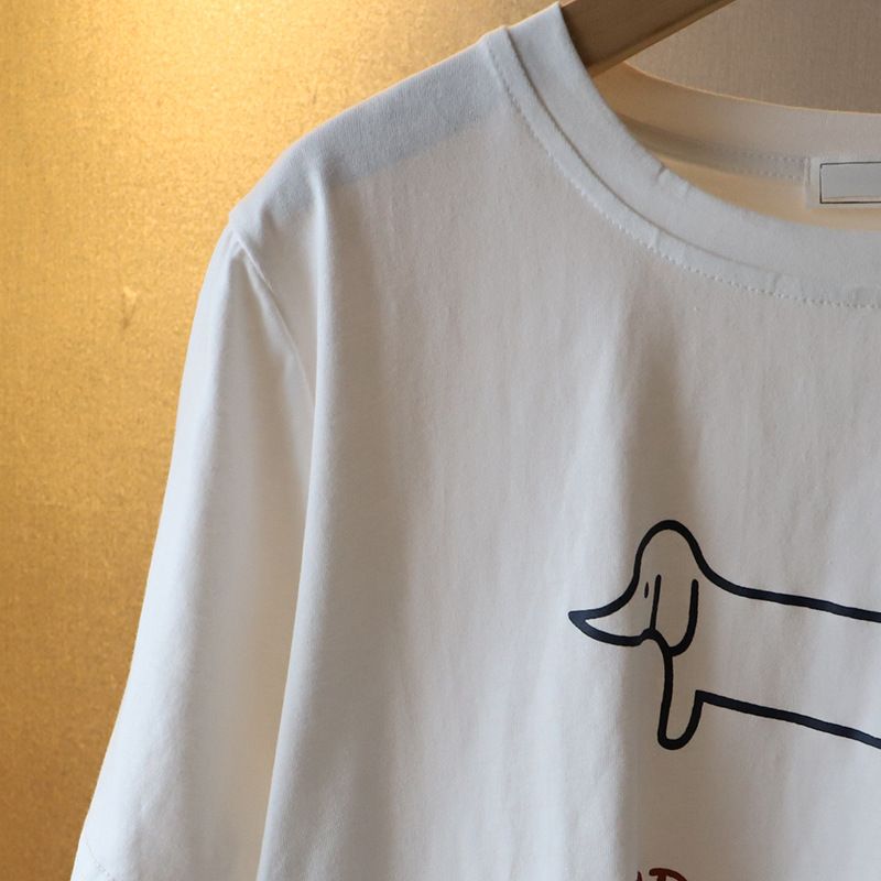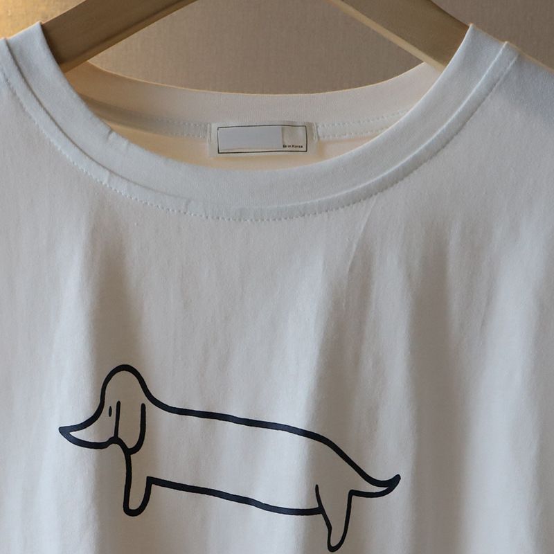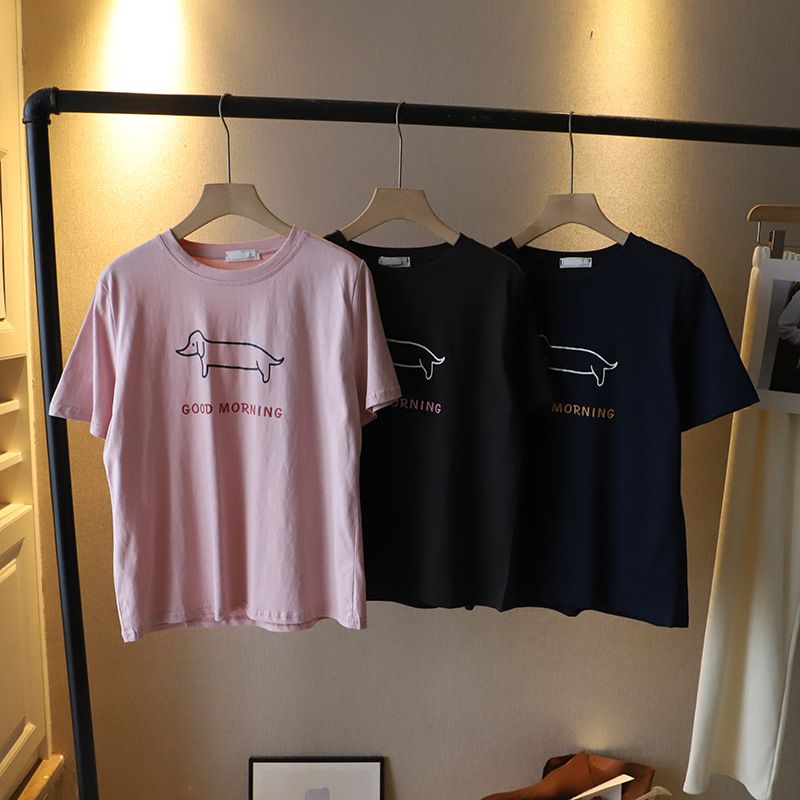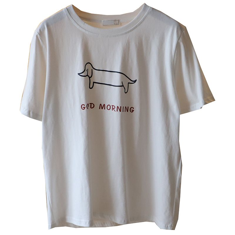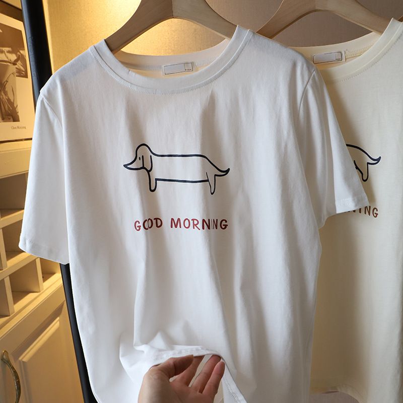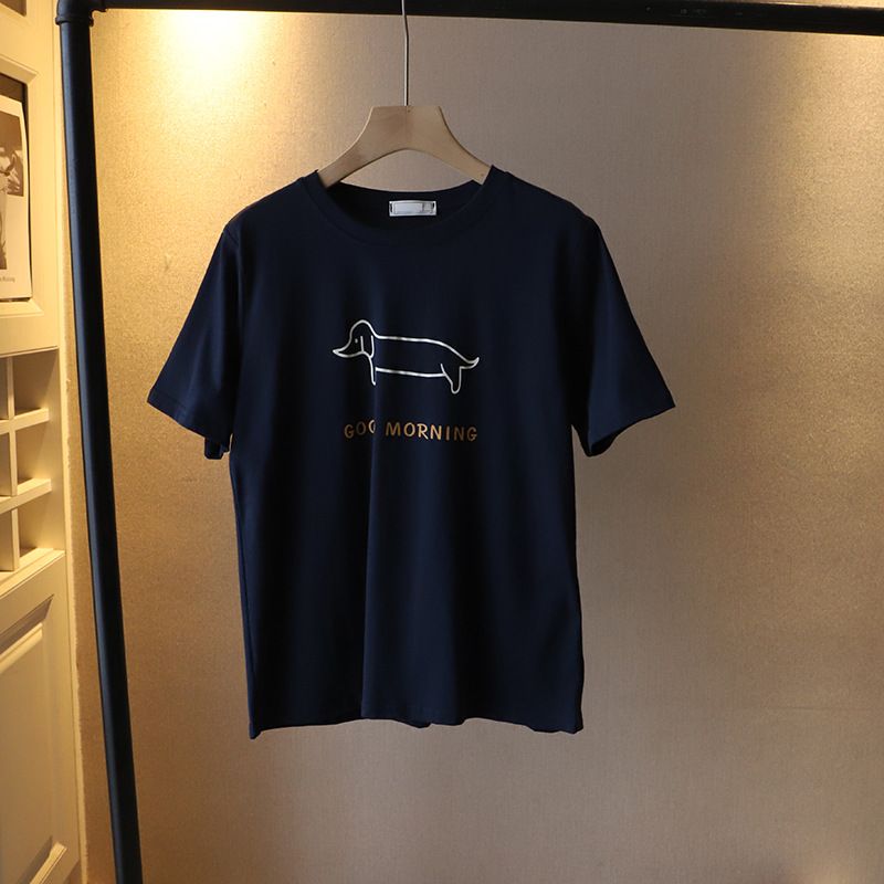 Puppy Printed Loose Short-sleeved T-shirt Casual Casual Top Dark Gray Free Size