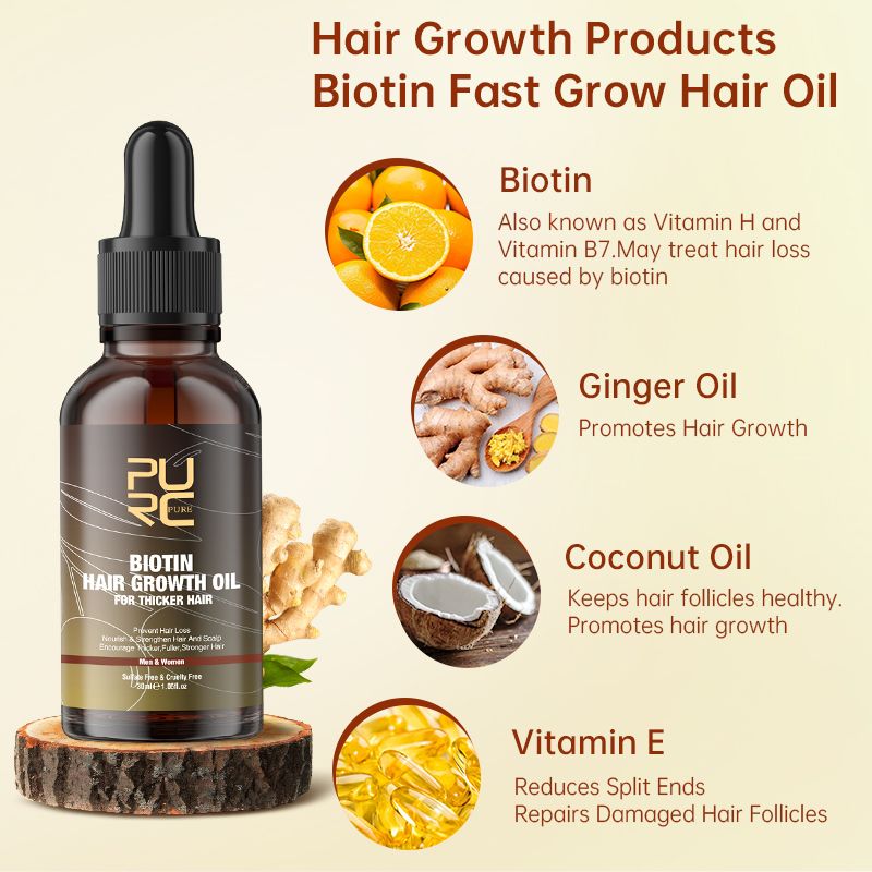 PURC Biotin Hair Growth Oil Shampoo Conditioner Sets Keratin Smoothing Hair Loss Treatment for Men Women Hair Care Products