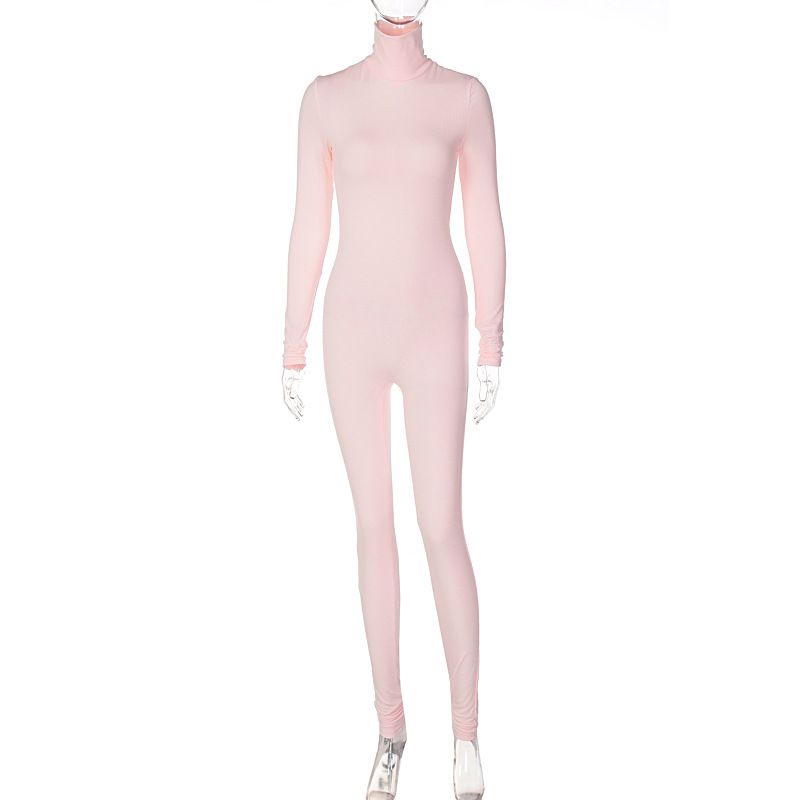 Pure Color Skinny Sports Fitness Jumpsuit Pink XL