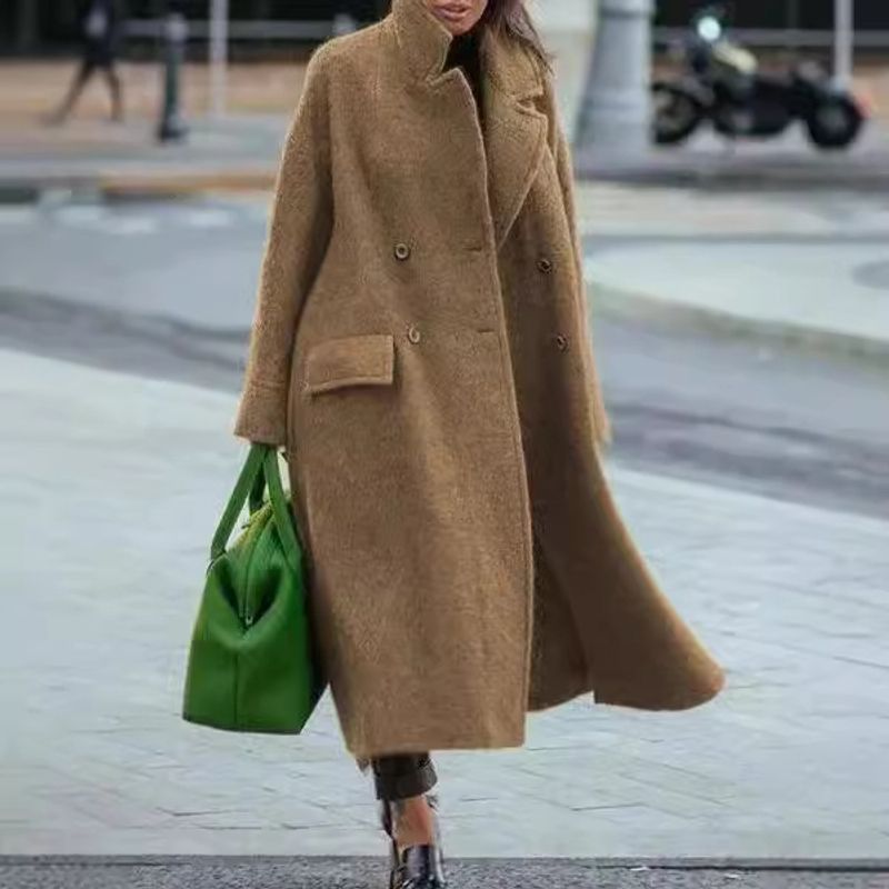 Pure Color Warm Keeping Woolen Coat Khaki L