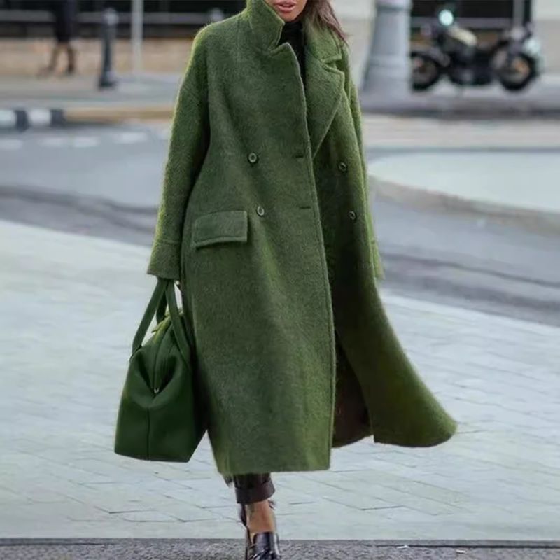 Pure Color Warm Keeping Woolen Coat Khaki XL