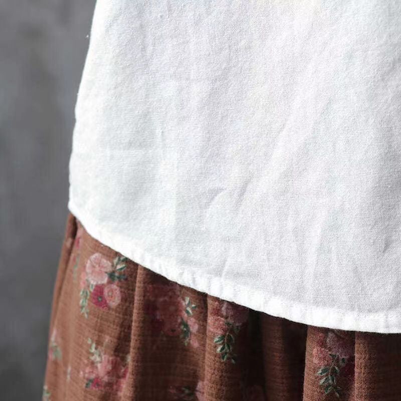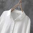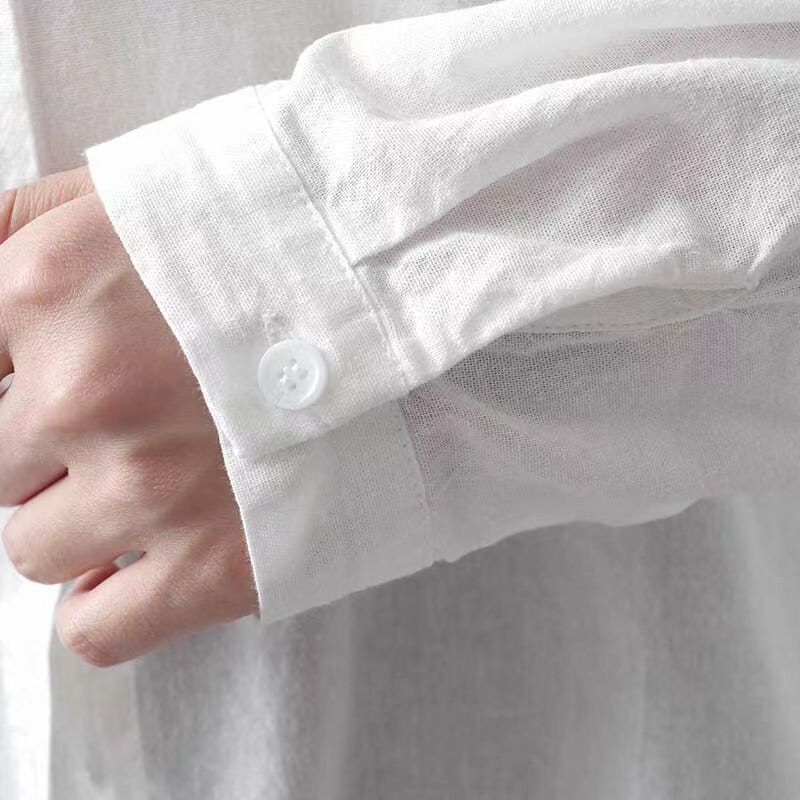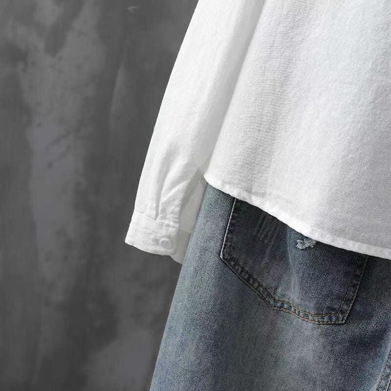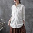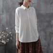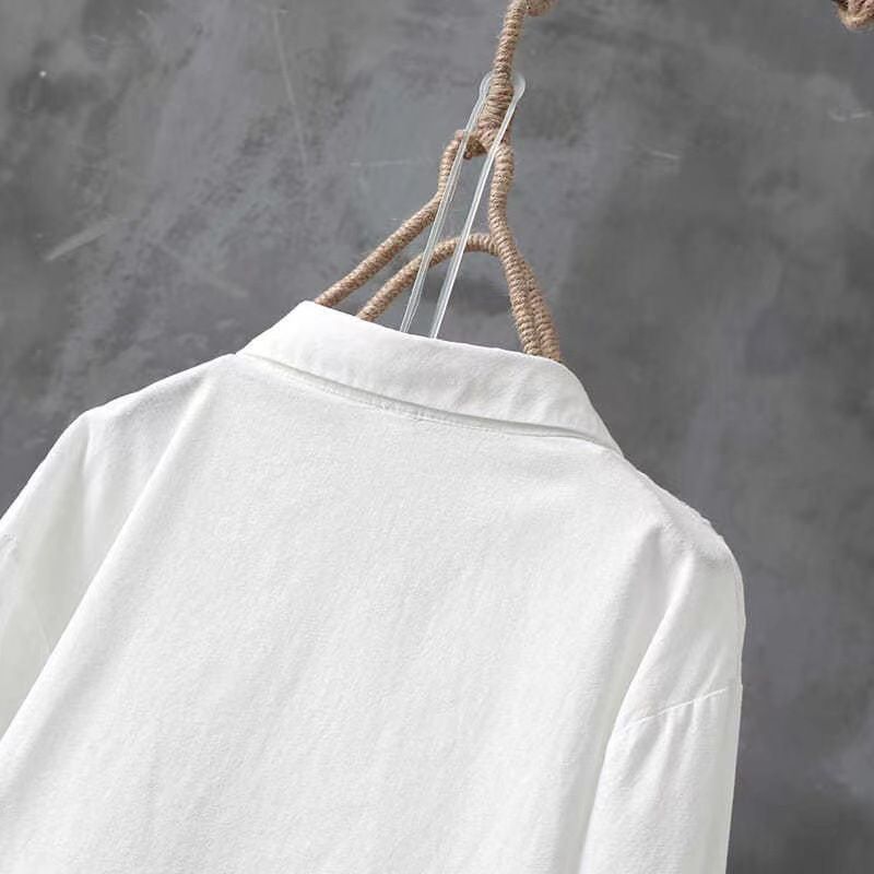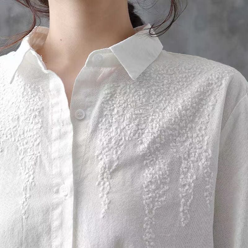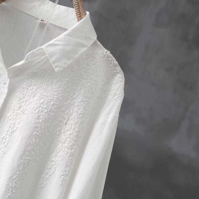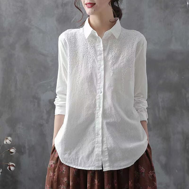 Pure Cotton Embroidered Long Sleeve Loose Casual Polo Collar Shirt White S