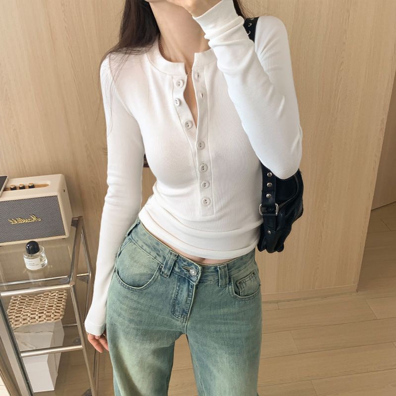 Pure Desire Long Sleeve Slim Design Sense Inner Bottoming Shirt Women White XL