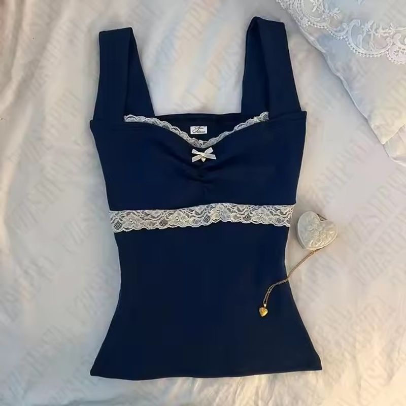 Pure Desire Style Slim Strap Top For Women Navy Blue S