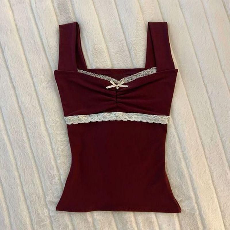 Pure Desire Style Slim Strap Top For Women Wine Red S