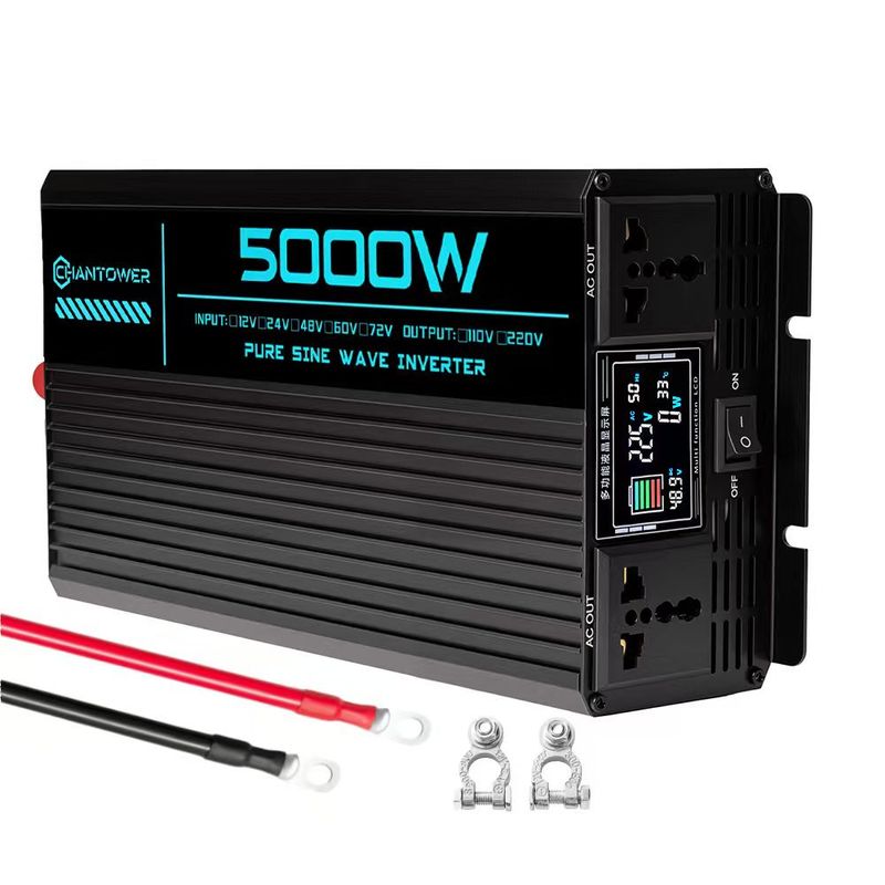 The CHANTOWER 5000W inverter converts 12V DC to 110V/220V AC, delivering clean, stable, and high-efficiency power for your devices anytime, anywhere. With 2200W continuous and 5000W peak power, it easily supports most home and outdoor appliances.