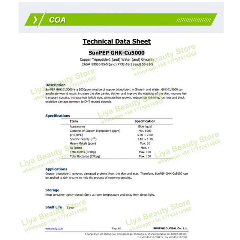 PURE SunPEP GHK Cu-5000 SUNFINE GLOBAL from Korea Cosmetic Raw Materials Skincare Ingredients