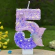 Purple Mermaid Tail Glitter 0-9 Number Candle Birthday Party Candle for Girls Cake Decoration