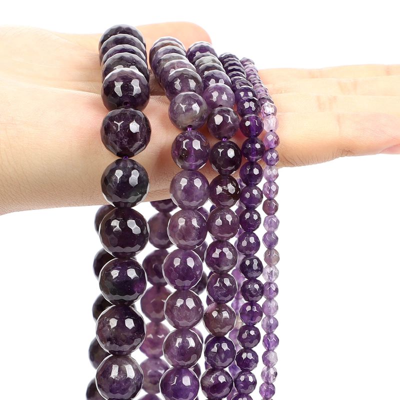Purple Natural Stone Beads Amethyst Agate Tourmaline Jades Loose Spacer Beads for Jewelry Making DIY Bracelets Craft Accessories