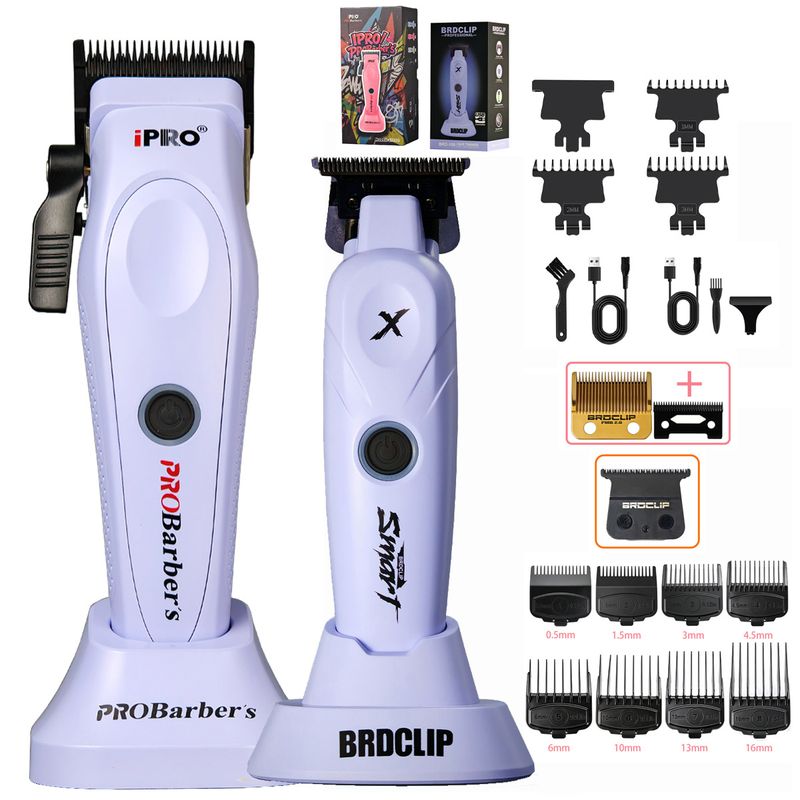 Purple Professional Fade Clipper Set Barber 7500RPM Hair Trimmer Line Up Cutting Machine 10000RPM Foil Shaver Pompadour Tools