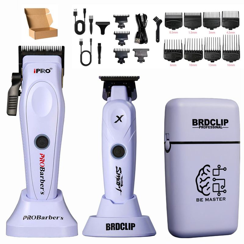 Purple Professional Fade Clipper Set Barber 7500RPM Hair Trimmer Line Up Cutting Machine 10000RPM Foil Shaver Pompadour Tools