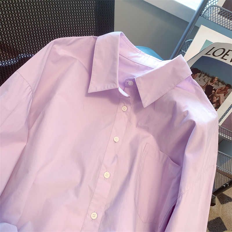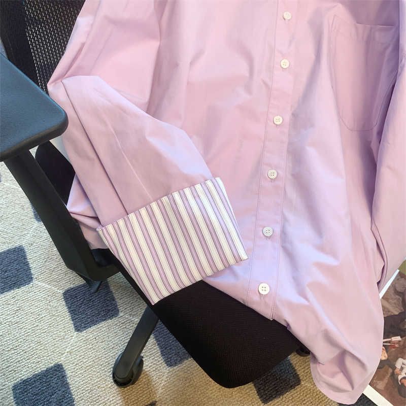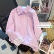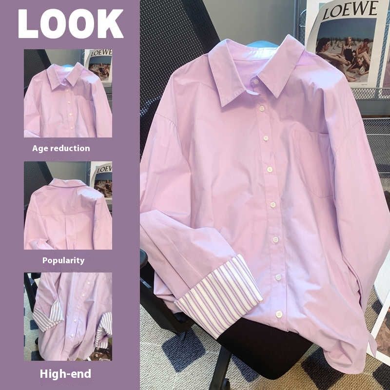 Purple Striped Polo Collar Shirt Women's Long-sleeved Top Purple S
