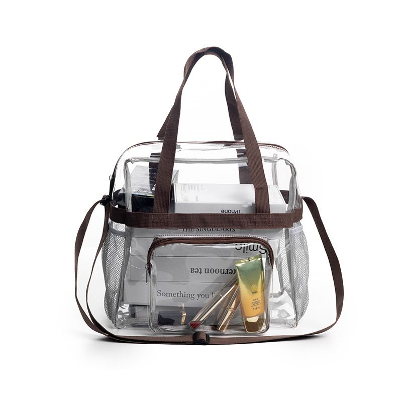 PVC Transparent Bags Handbag Portable Travel Buggy Bag Dark Brown