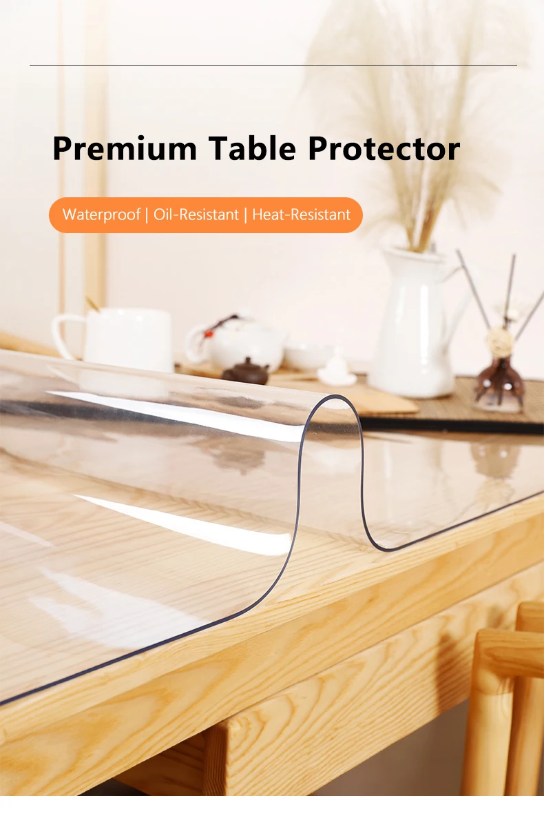 PVC Transparent Table Protector – 1.0mm Thick Waterproof Oil & Heat-Resistant for Dining, Coffee Tables and Desks-Home & Office