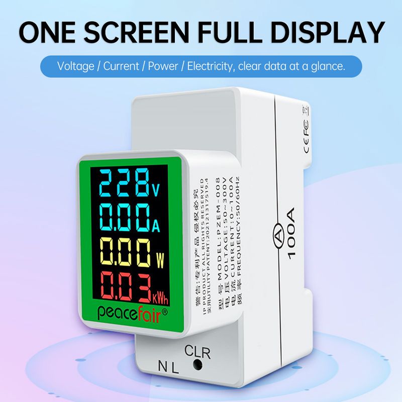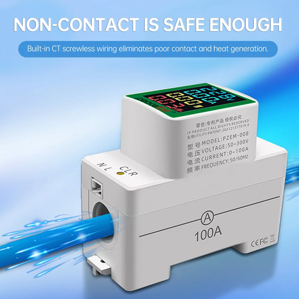 PZEM-008 AC Digital Multifunction Rail Meter Voltmeter Ammeter AC50-300V 100A Suitable for electronic maintenance, etc.