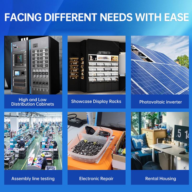 8. Wide range of applications: suitable for high and low power distribution cabinets, assembly line testing, electronic maintenance, household meter boxes and other fields.