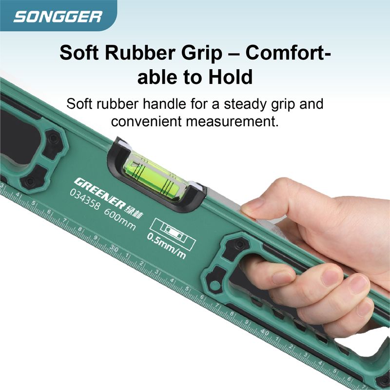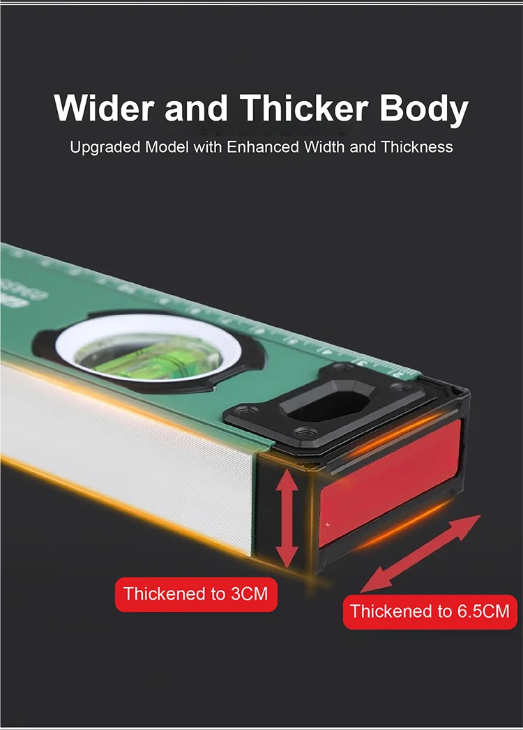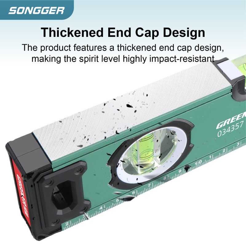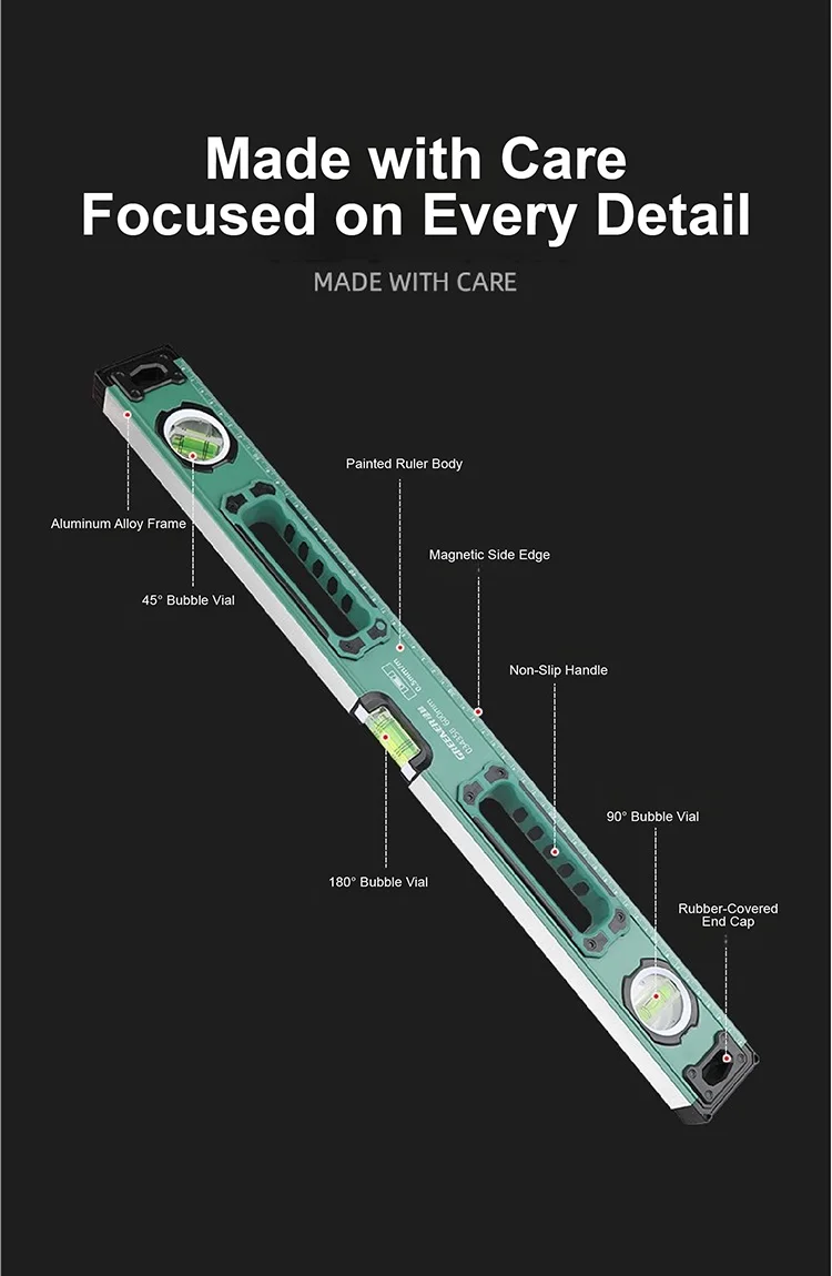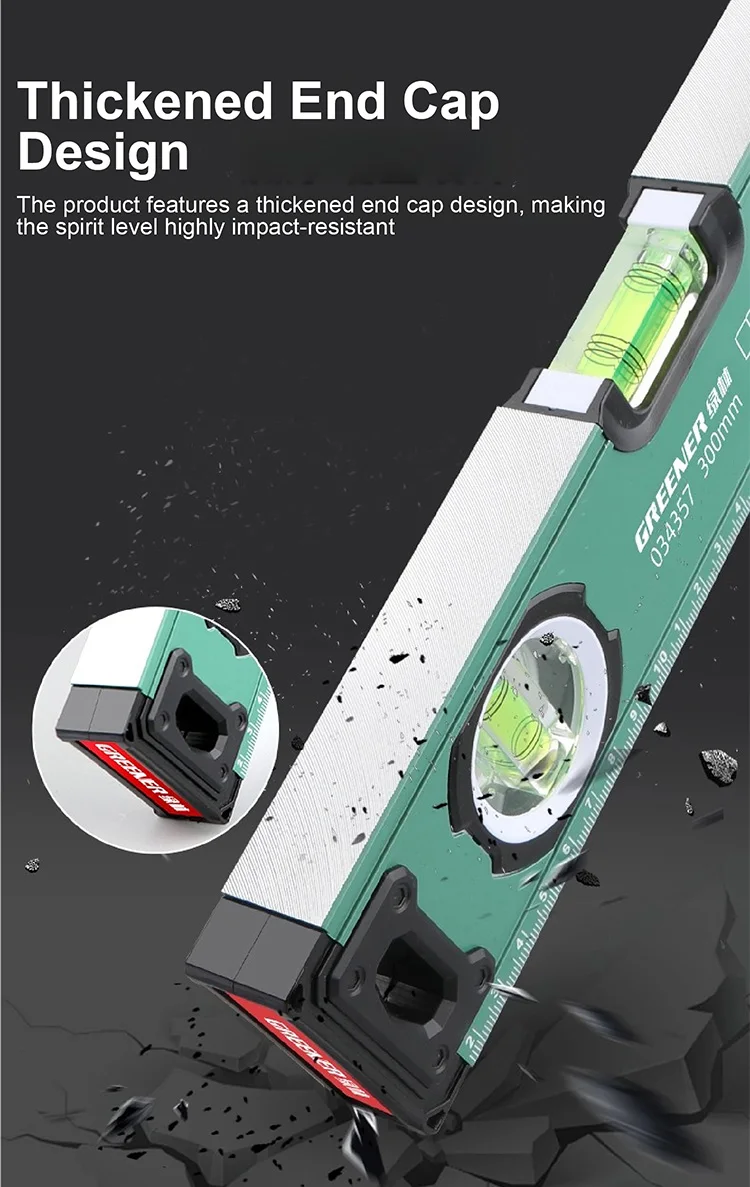 A1: The level is built with thickened aluminum alloy for strength and durability, and features reinforced rubber end caps for added protection.