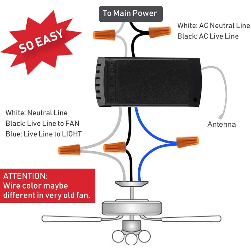 Note:Make sure that there is enough space at the top of the fan to install the receiver!