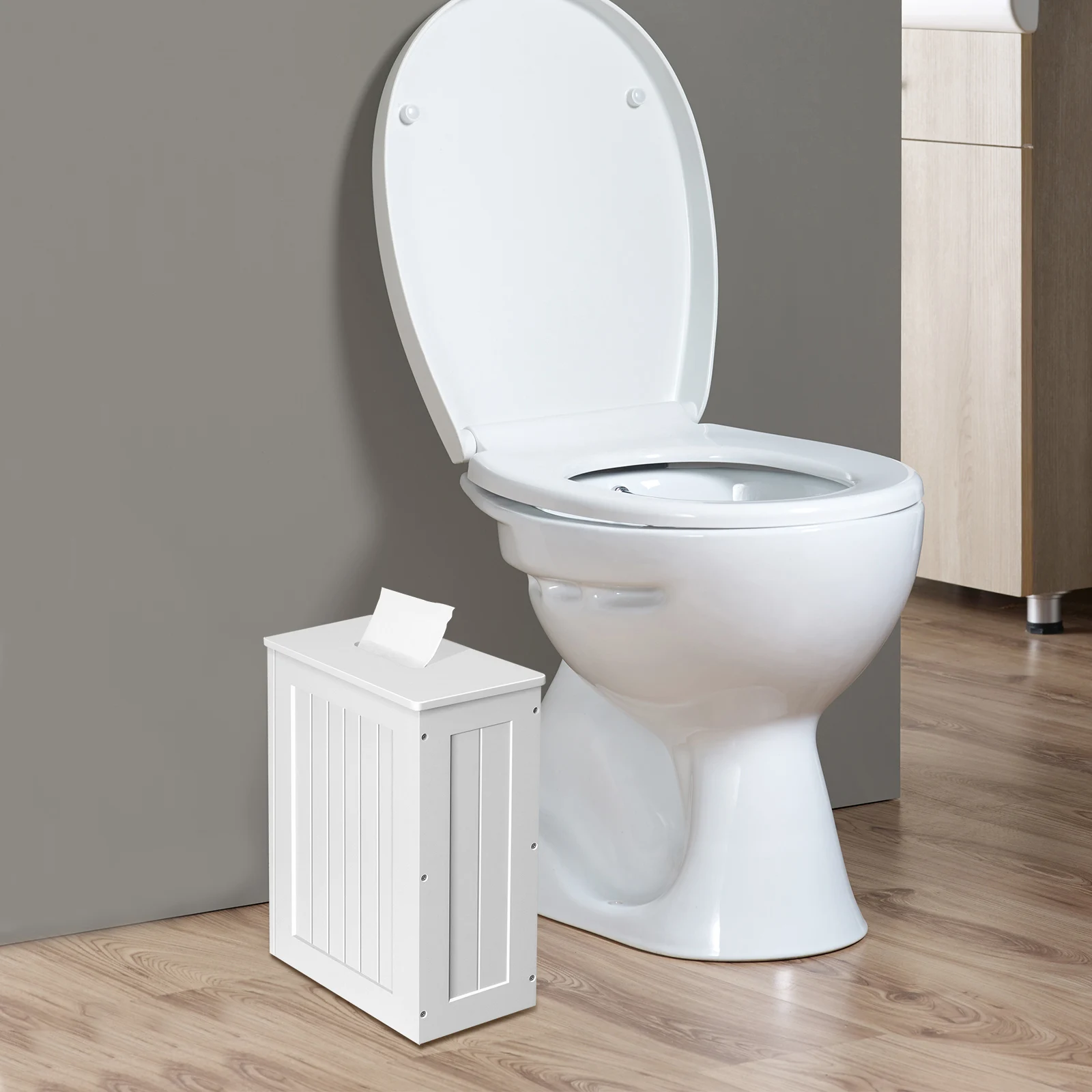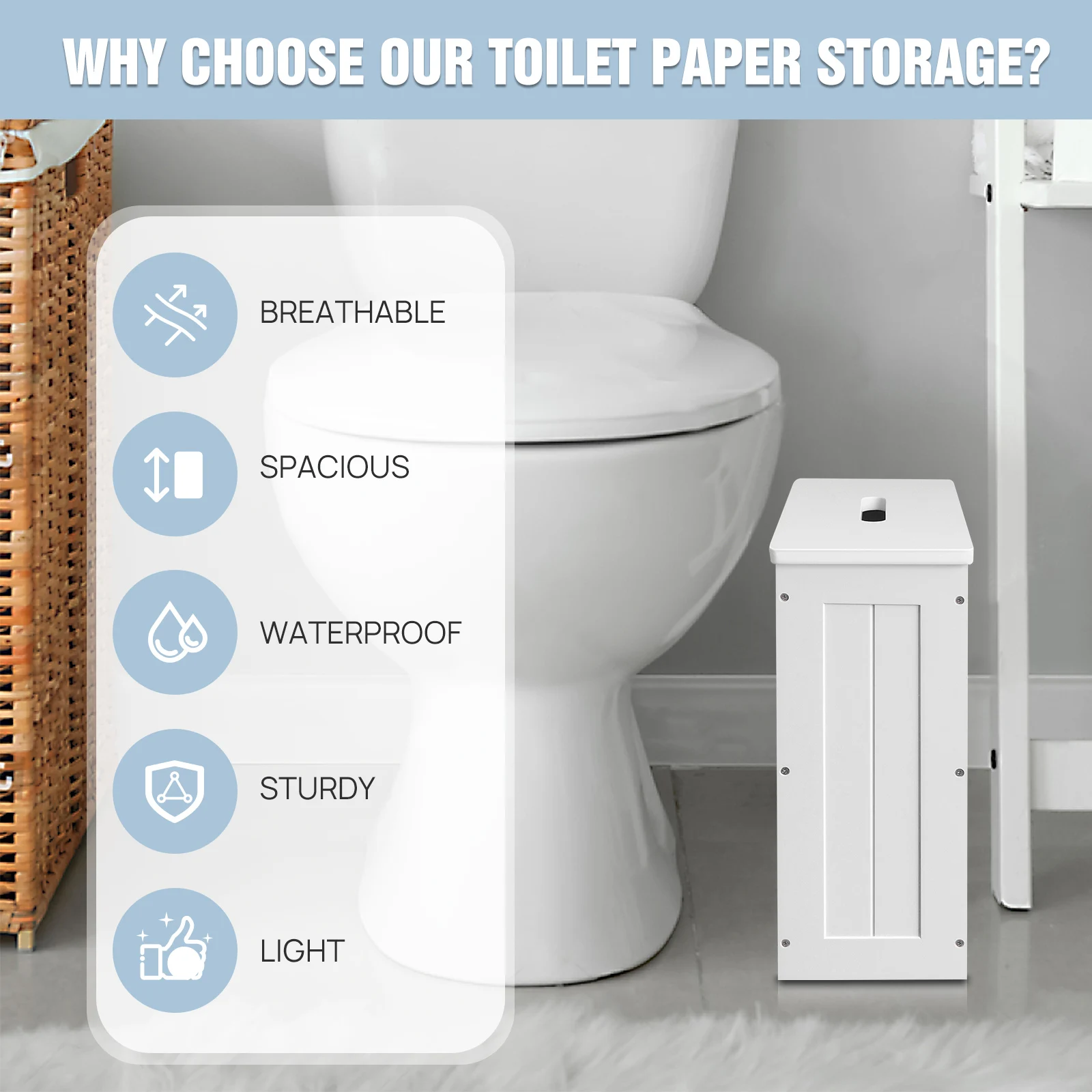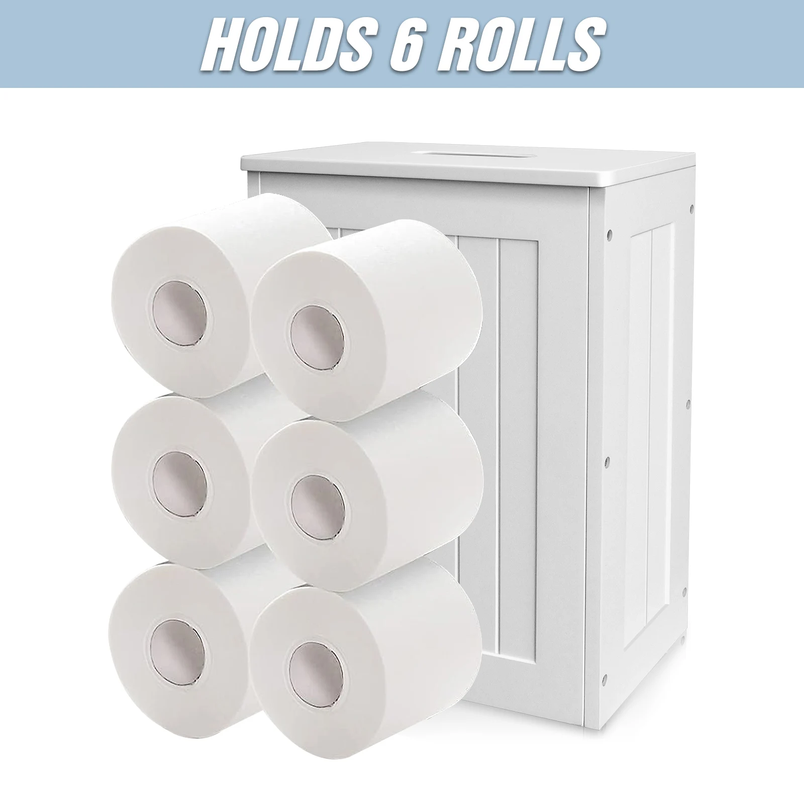 QIMU Toilet Paper Storage Wooden Freestanding Cabinet Waterproof Bathroom Shelf Organizer for 6 Rolls White Storage Box