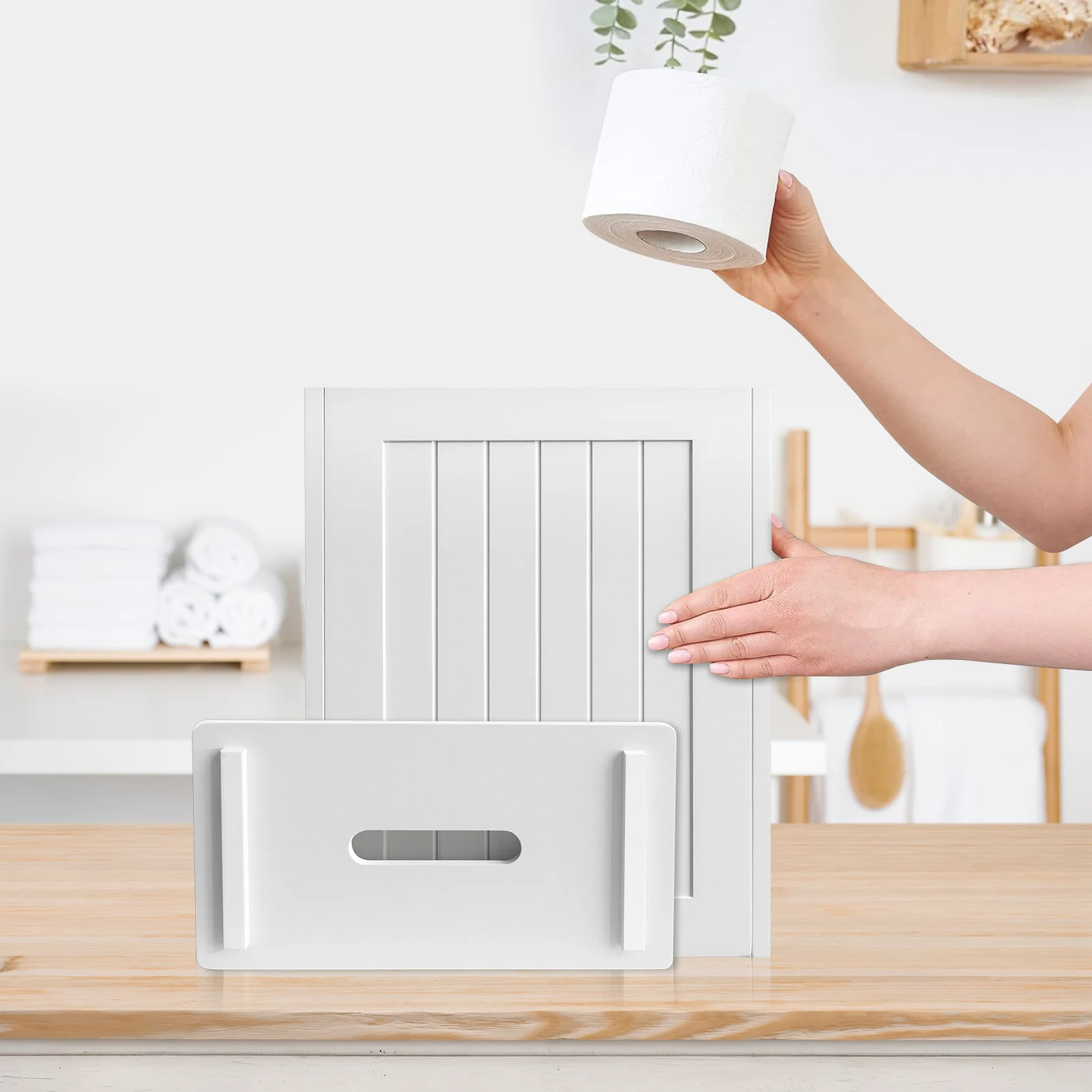Stylish and practical storage cabinet: The compact bathroom storage box can hold 6 rolls of toilet paper. Its small size and slim shape make the bathroom storage piece perfect for the space next to the toilet and other narrow spaces in the bathroom. The DayPlus bathroom storage furniture does not take up too much space, keeping your bathroom clean and tidy.