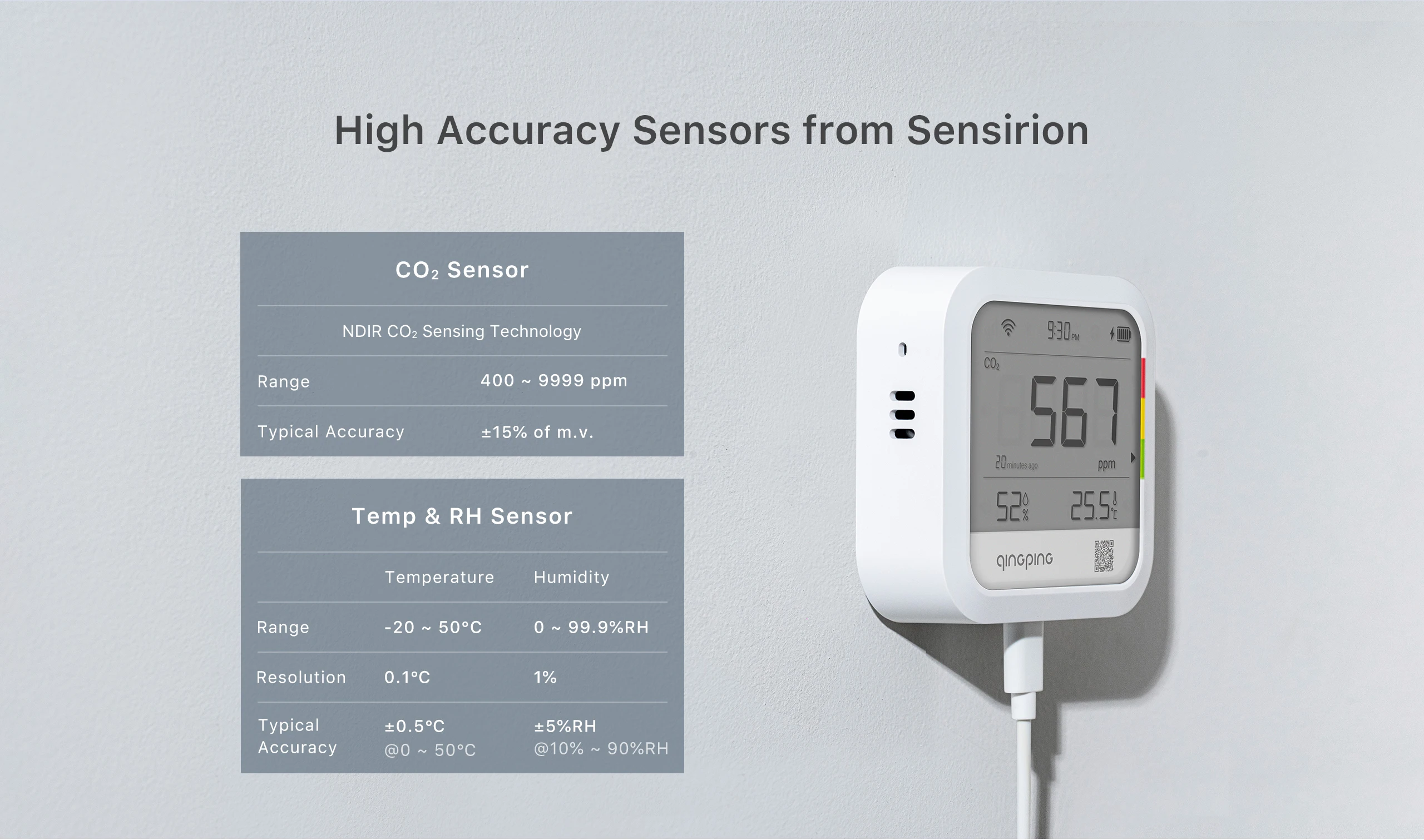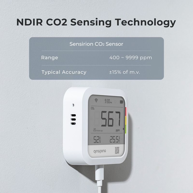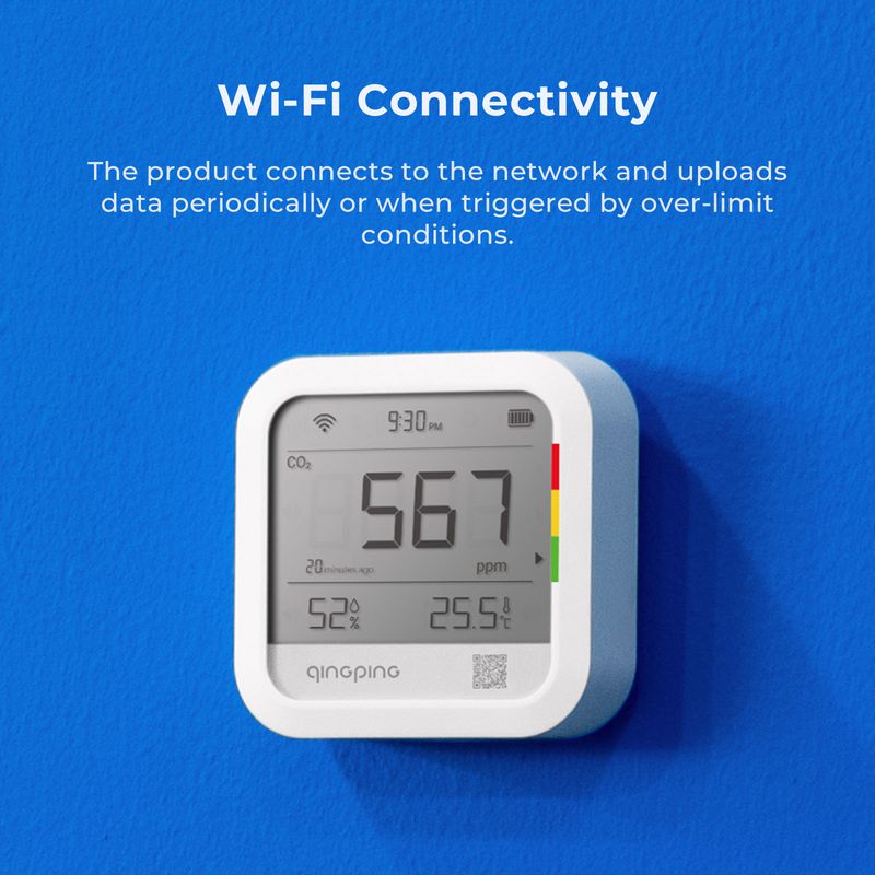 【Wi-Fi Connectivity, Enables Remote Monitoring】Remotely access data via the "Qingping IoT" app or website, as the product supports Wi-Fi. Devices can be managed with Qingping IoT, shared and collaborated with teammates. The battery has a long standby time, and you can also plug it in USB power all the time.