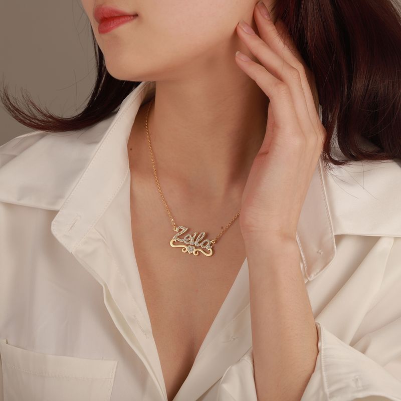 Name Necklace With Heart, Custom Name Necklace, Personalized Name Necklace, Personalized Bling Nameplate Pendant, Graduation Gift