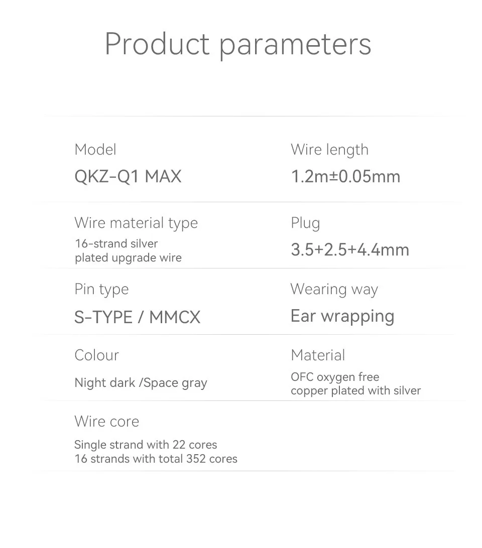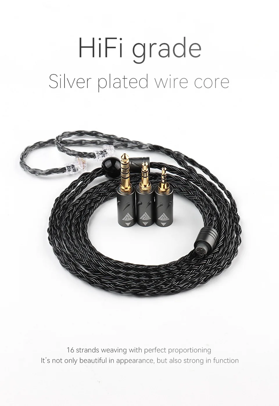 QKZ Q1 MAX Earphones Upgrade Audio Cable 16 Stand 352 Cores 3in1 Silver Plated MMCX QDC KZ C for QKZ HBB ZXT AS16 PRO ZSN PRO X