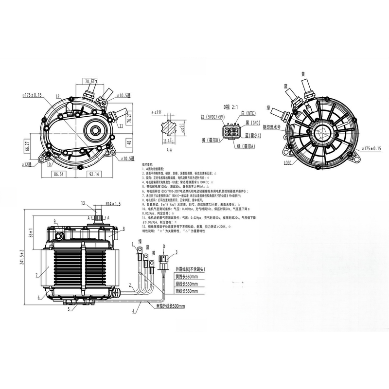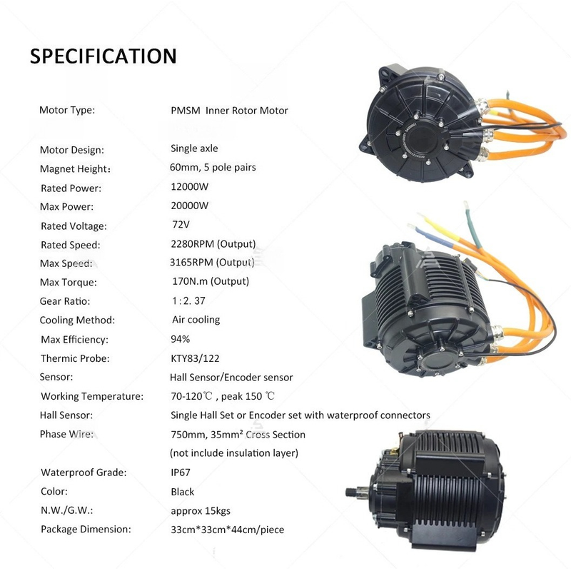 1. 1pc XQS165 60H V3 Mid Drive Motor with 1:2.37 Gear Box (Hall) - Peak 20KW / Rated 12KW