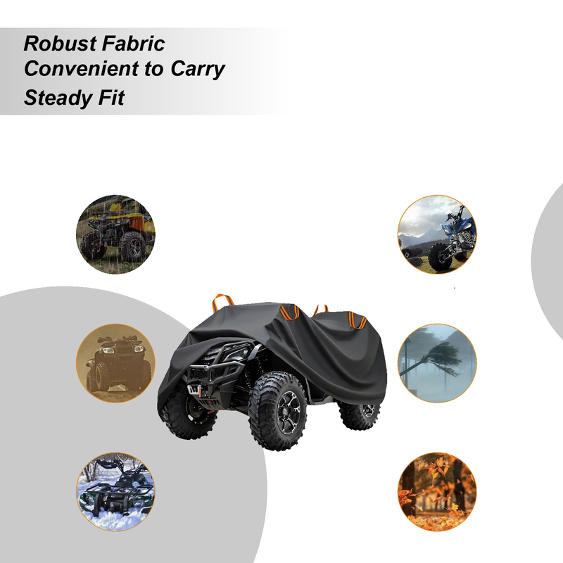 4.Robust Fabric: Engineered for extreme conditions, the ATV cover ensures lasting defense against rugged terrains and weather challenges, protecting your vehicle in mountains or on beaches through its tear-resistant composition