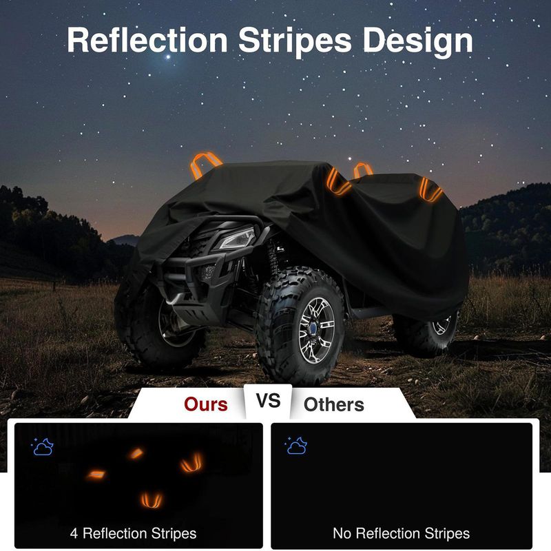 1.Full Protection: This ATV cover protects against weather damage by resisting rain, snow, and rust, crafted with a three-layer fabric that ensures complete vehicle protection, perfect for year-round outdoor use