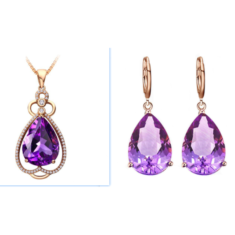 Quality Ear Hook Purple Gemstone Diamond Ring Rose Gold Collarbone Necklace Set Set