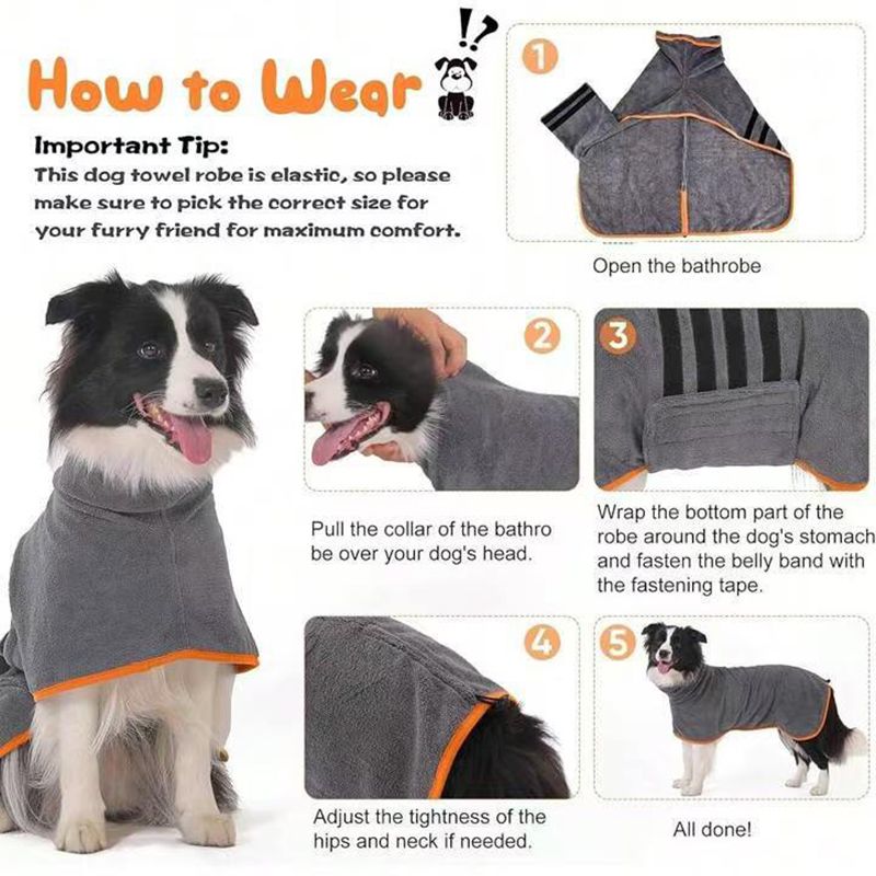 Quick-absorbing microfiber pet grooming products, pet drying towels, bathrobes with hoods, dog bathrobes.