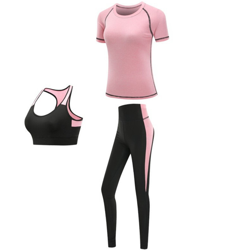 Quick dry women sportswear yoga set fitness gym yoga clothing suit sets coat+bra+t shirt+leggings 2019 workout running training