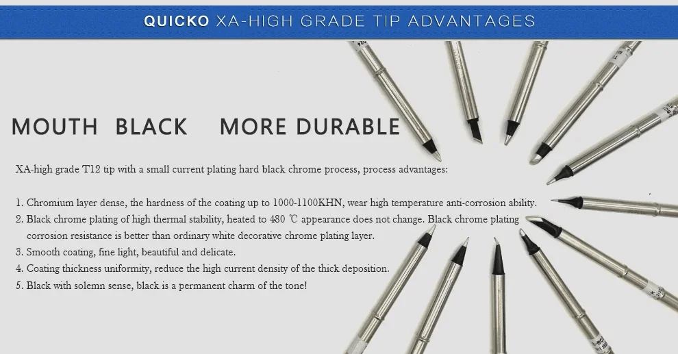 XA High-gradeT12 tip with low current plating hard black chrome process, process advantages: